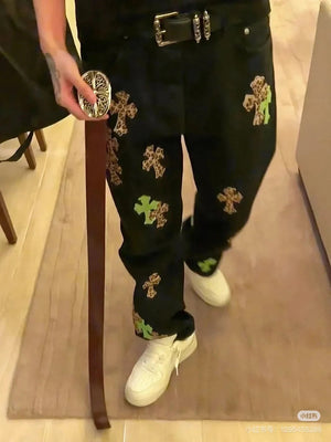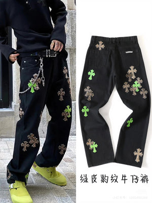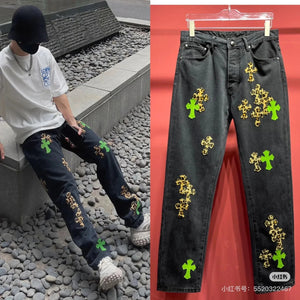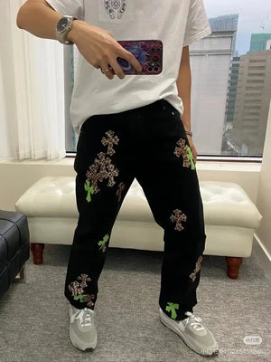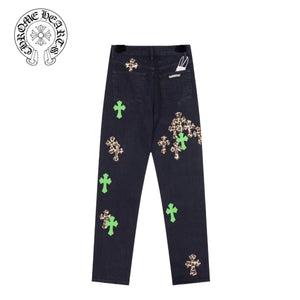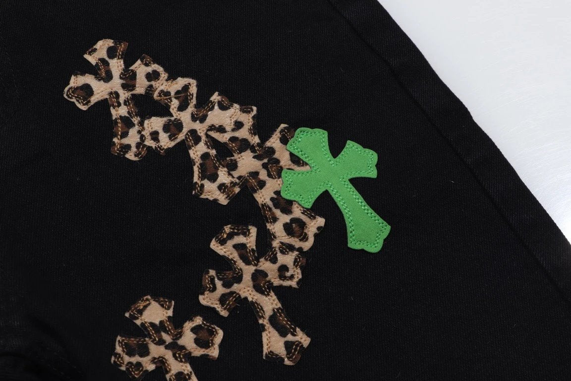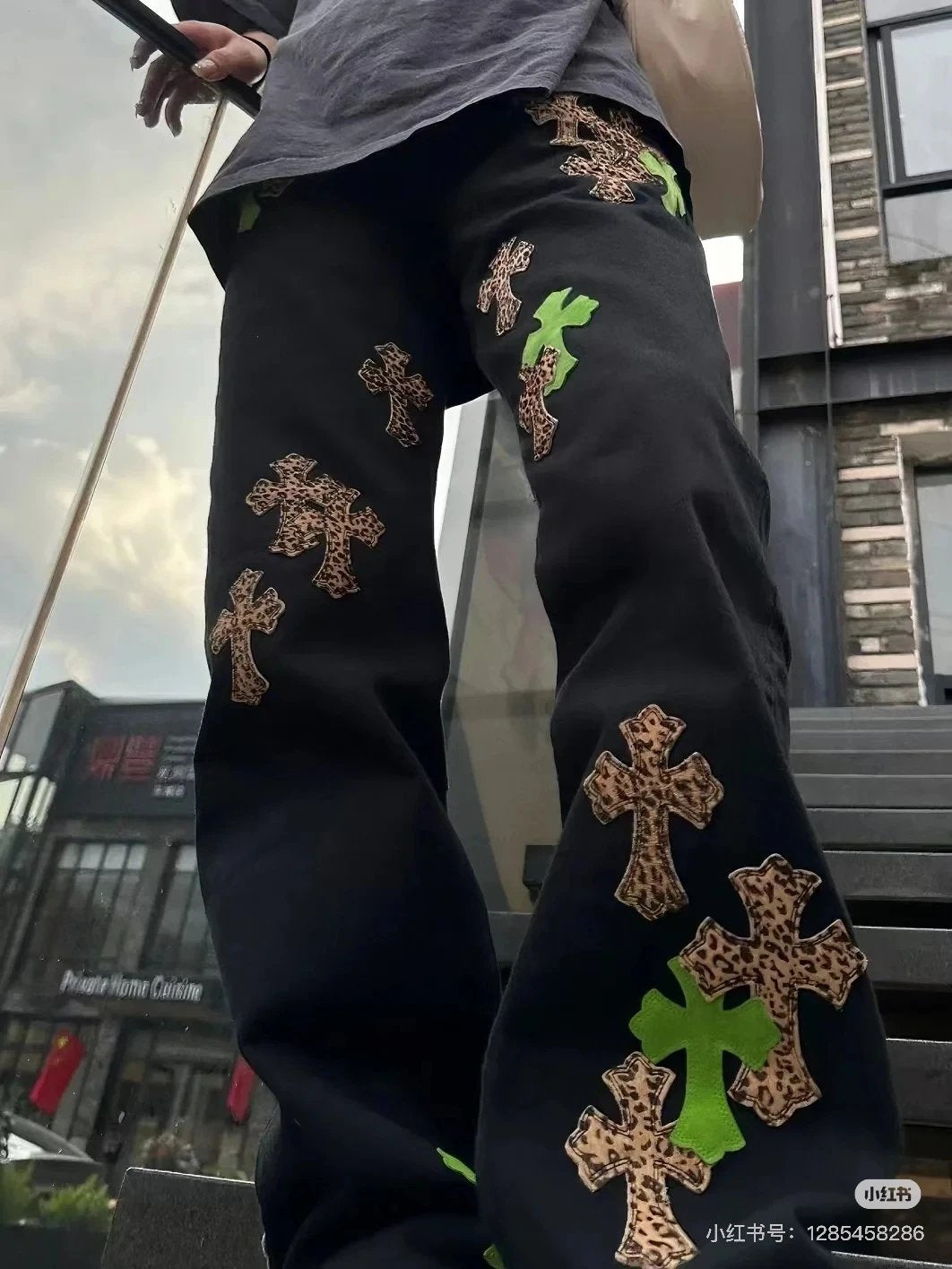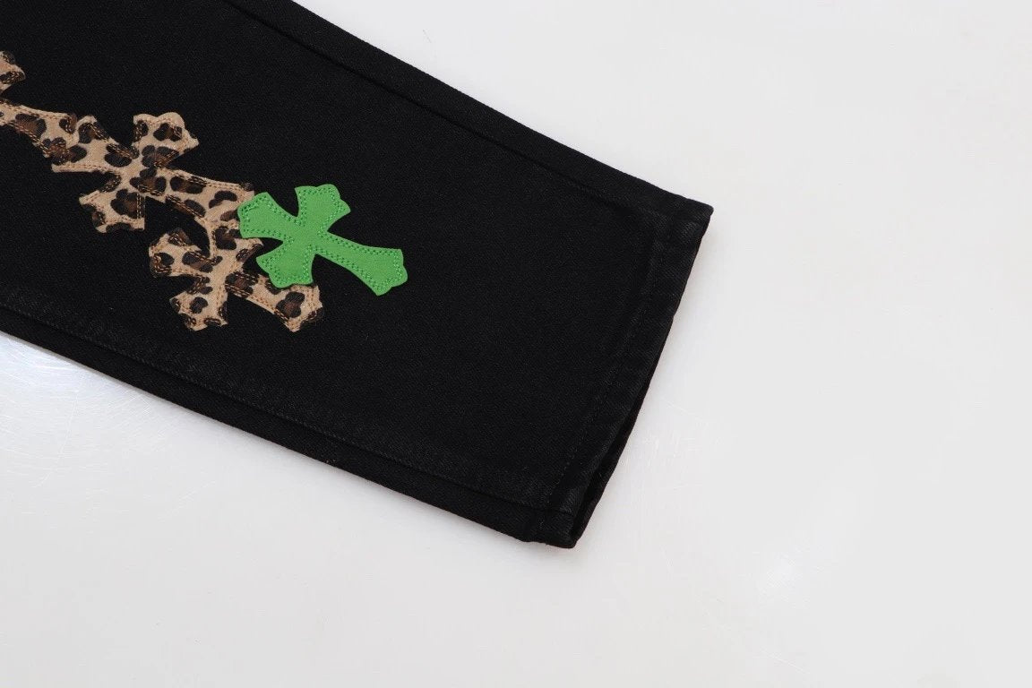 Chrome Hearts Jeans Front and back leopard print patchwork leather logo25ss Spring Summer New Straight Loose Slim Fit Jeans Unisex Long Pants