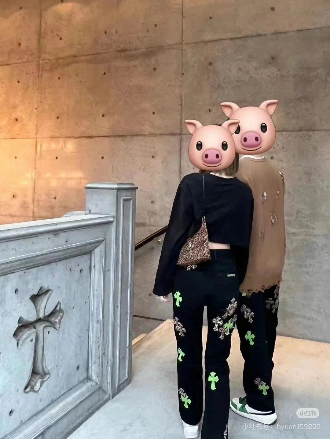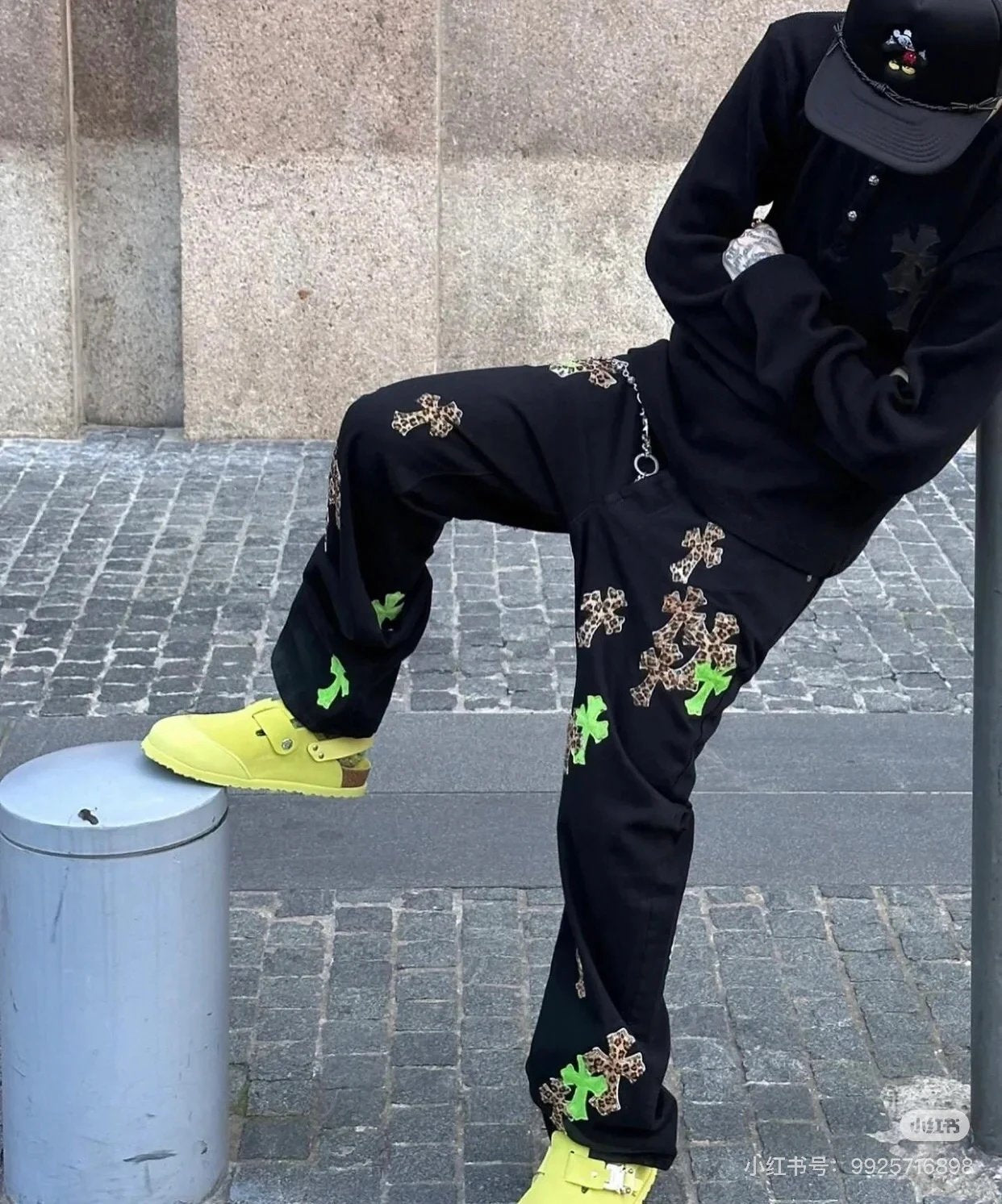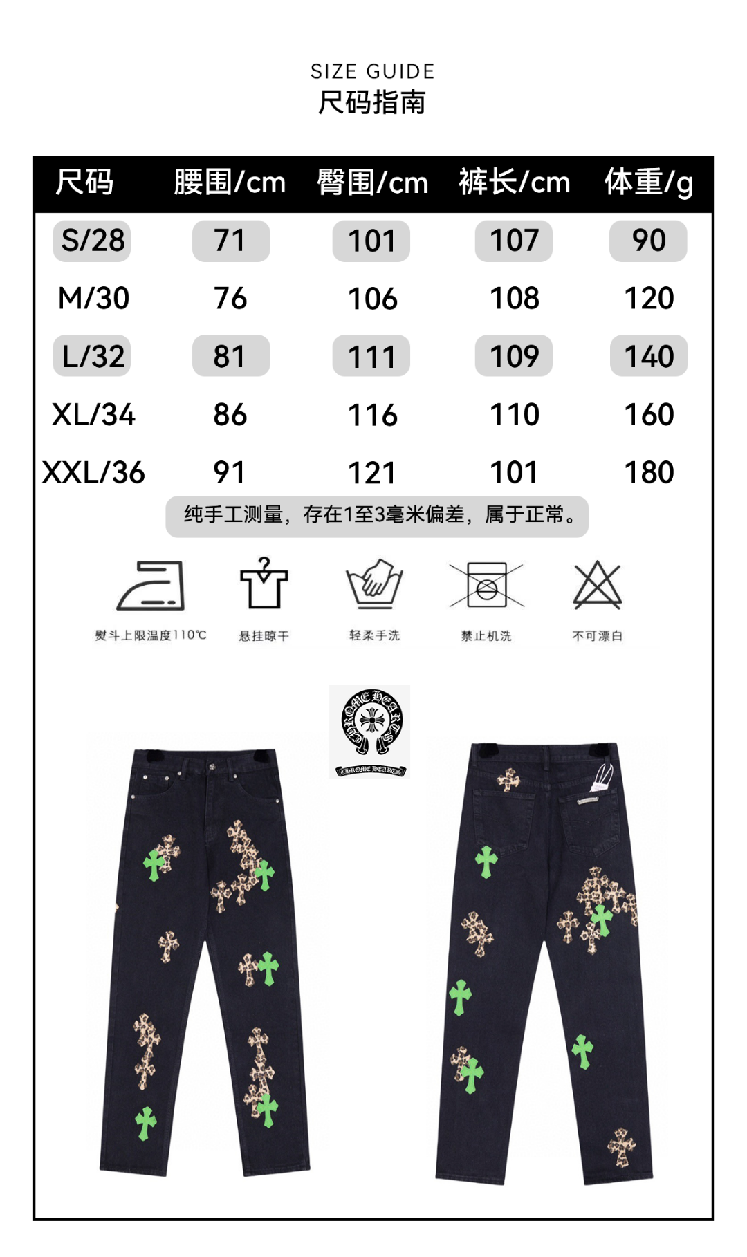 Chrome Hearts Jeans Front and back leopard print patchwork leather logo25ss Spring Summer New Straight Loose Slim Fit Jeans Unisex Long Pants