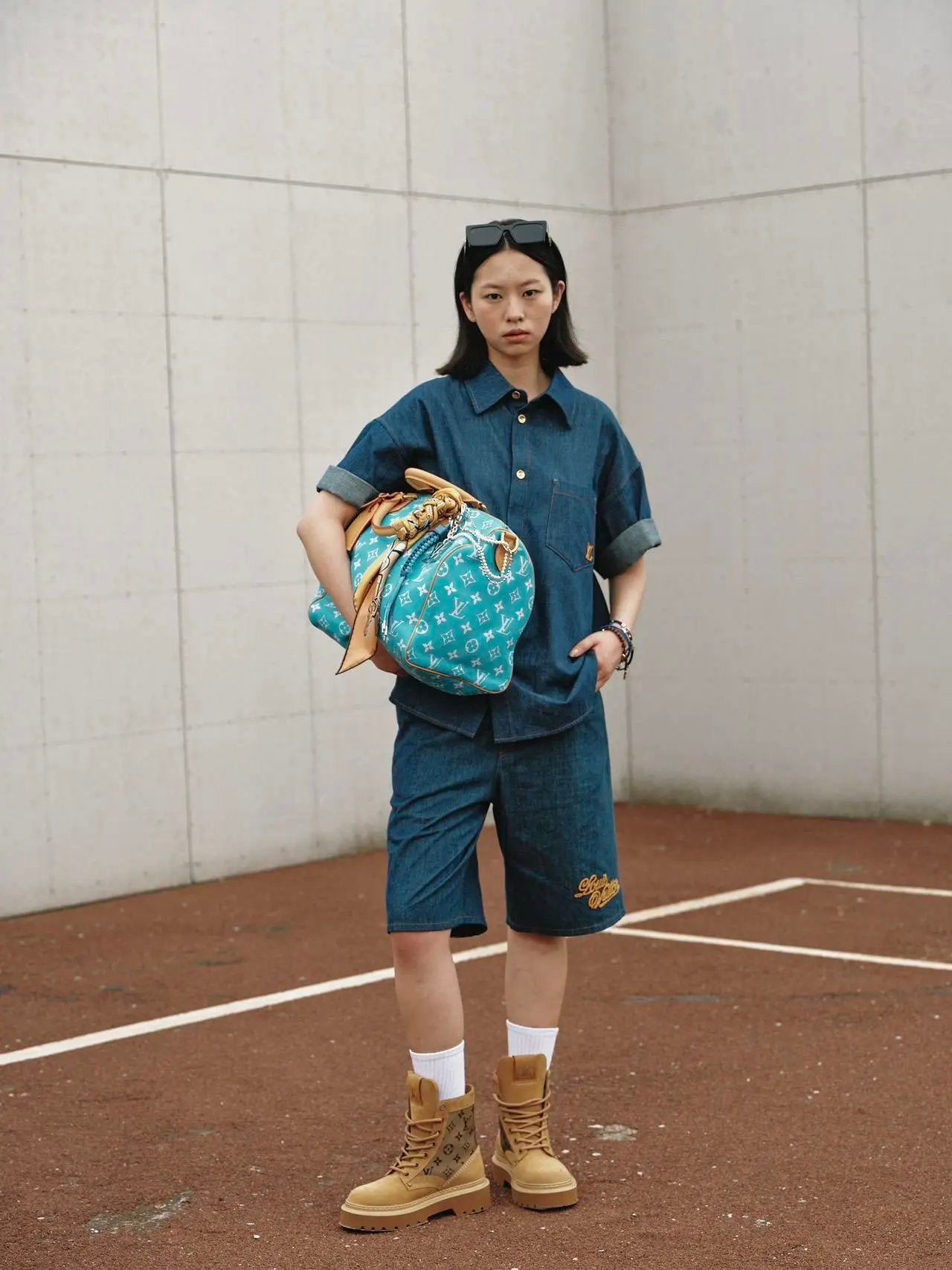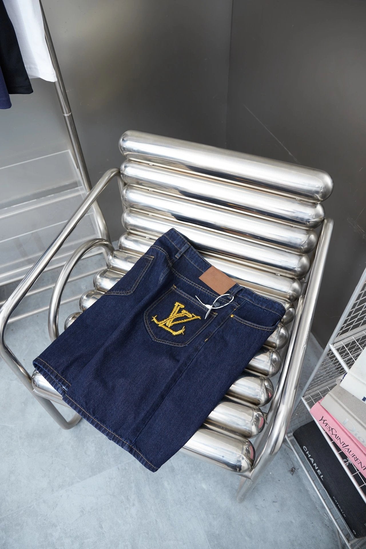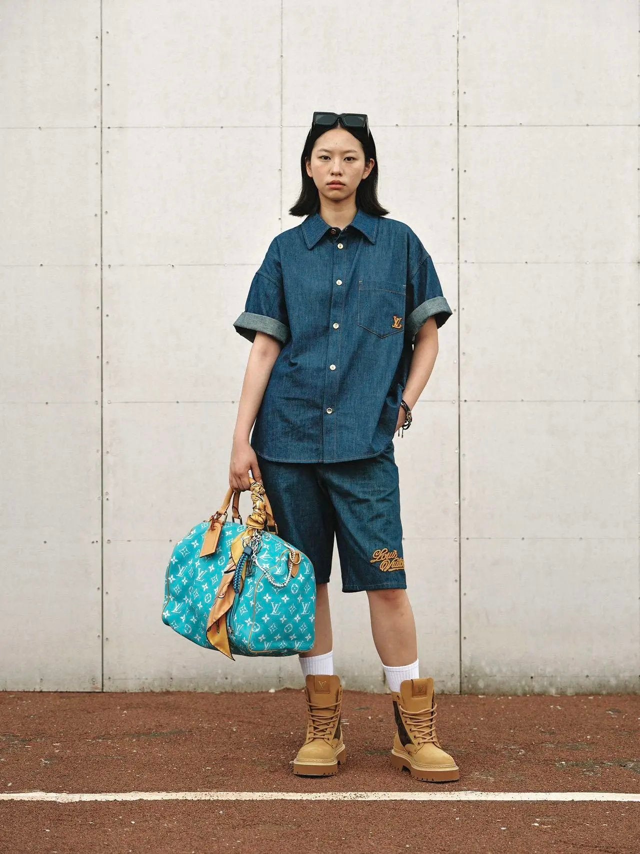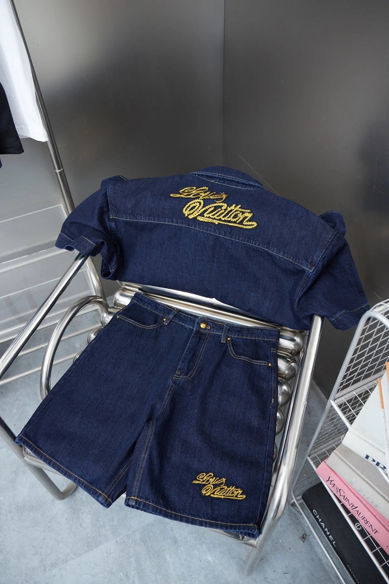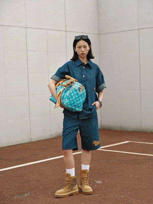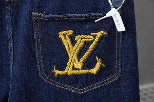 Louis LV 25SS Early Spring New Rope Signature Letter Embroidery Denim Shorts