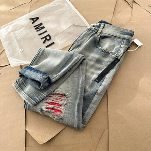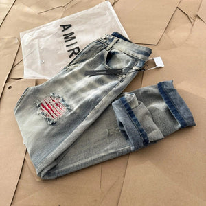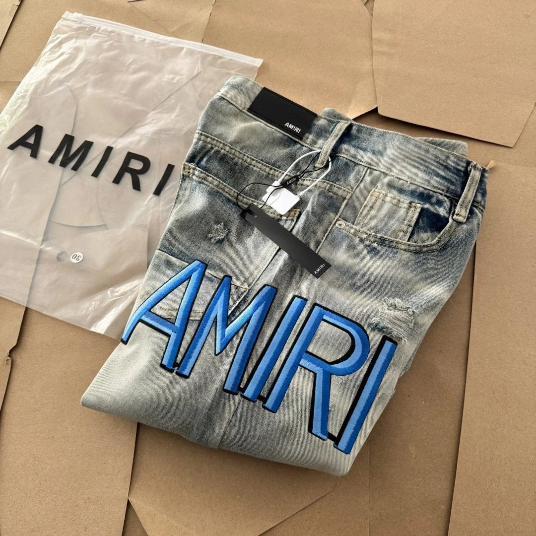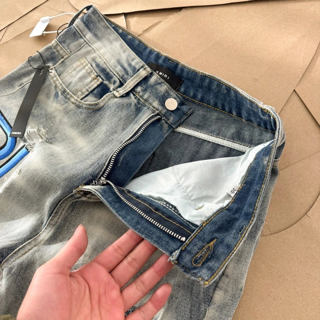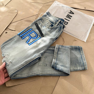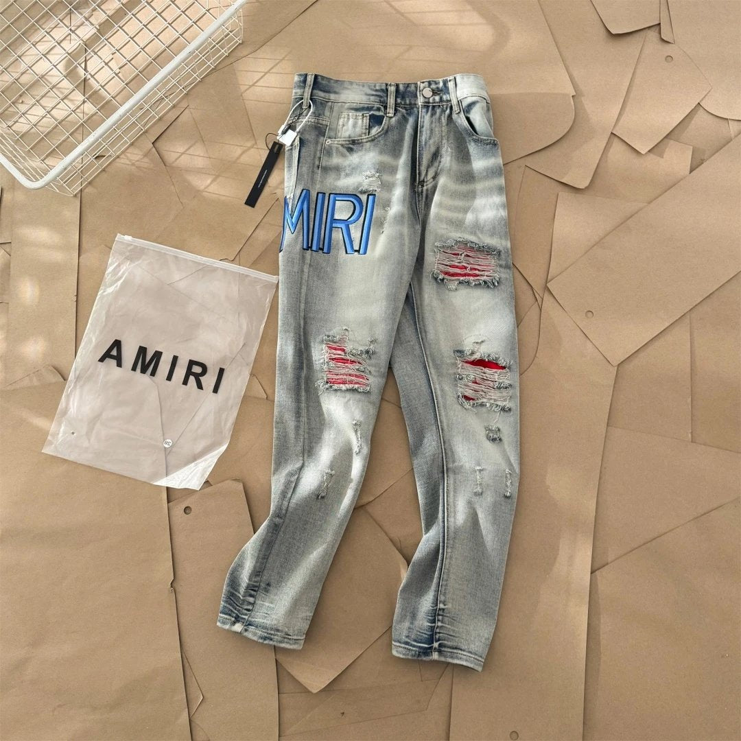 Amiri Jeans Front and back letter embroidery logo25ss Spring Summer New Straight Slim Fit Jeans Unisex Loose Fit Long Pants