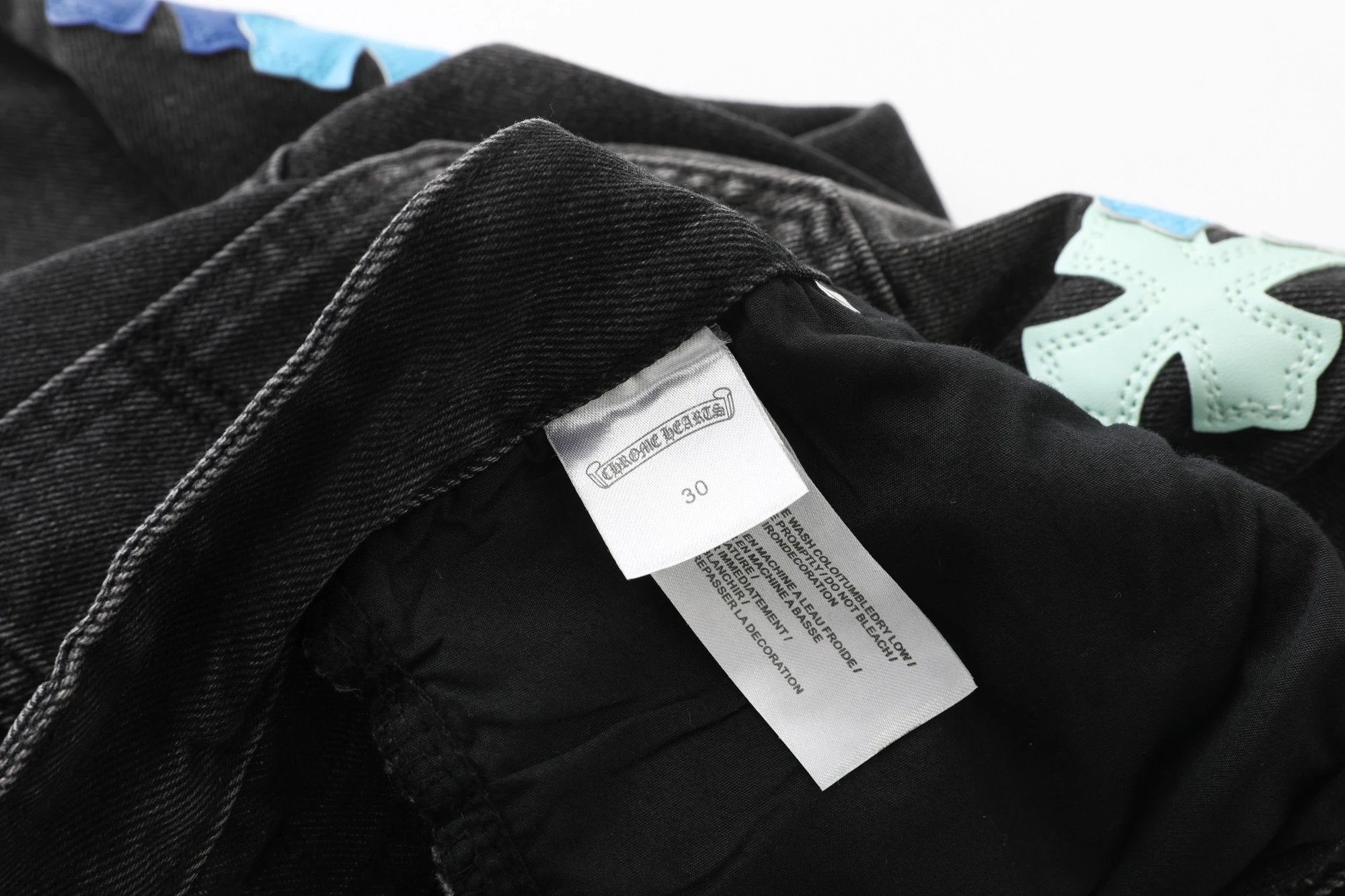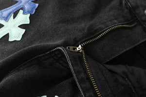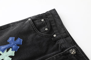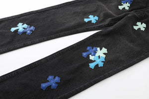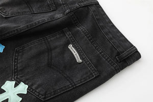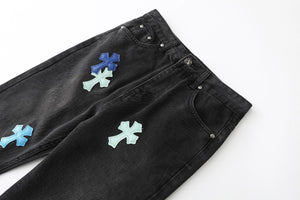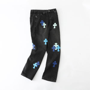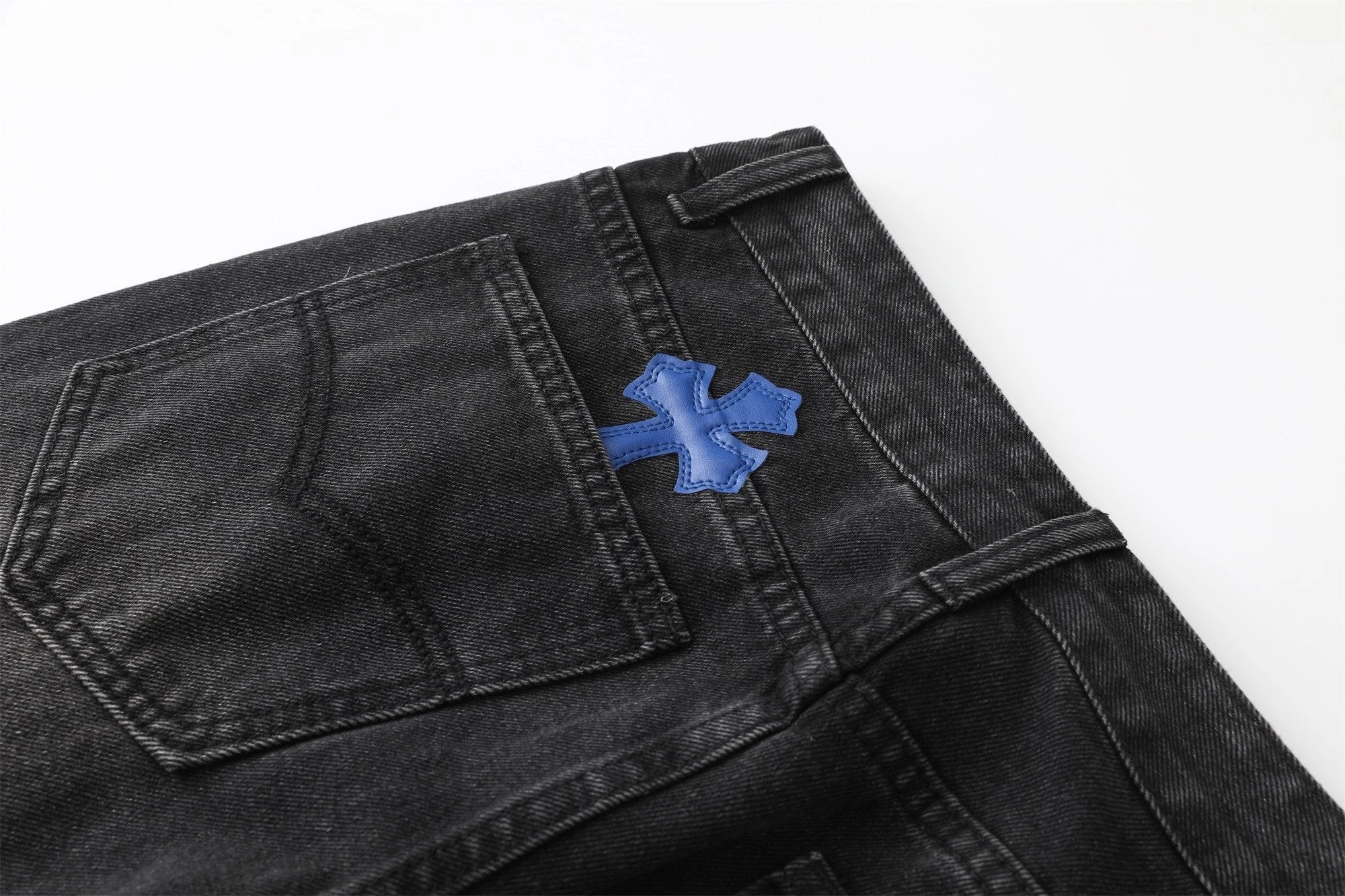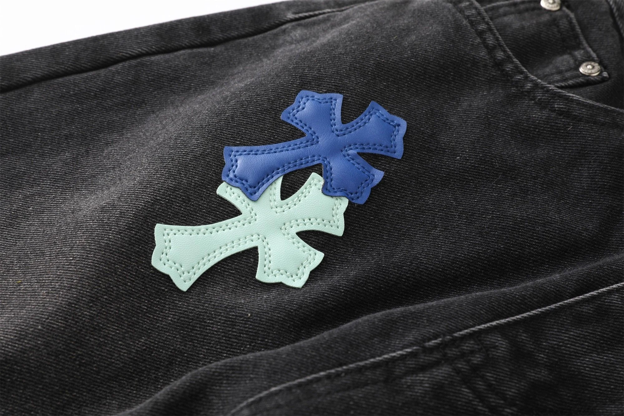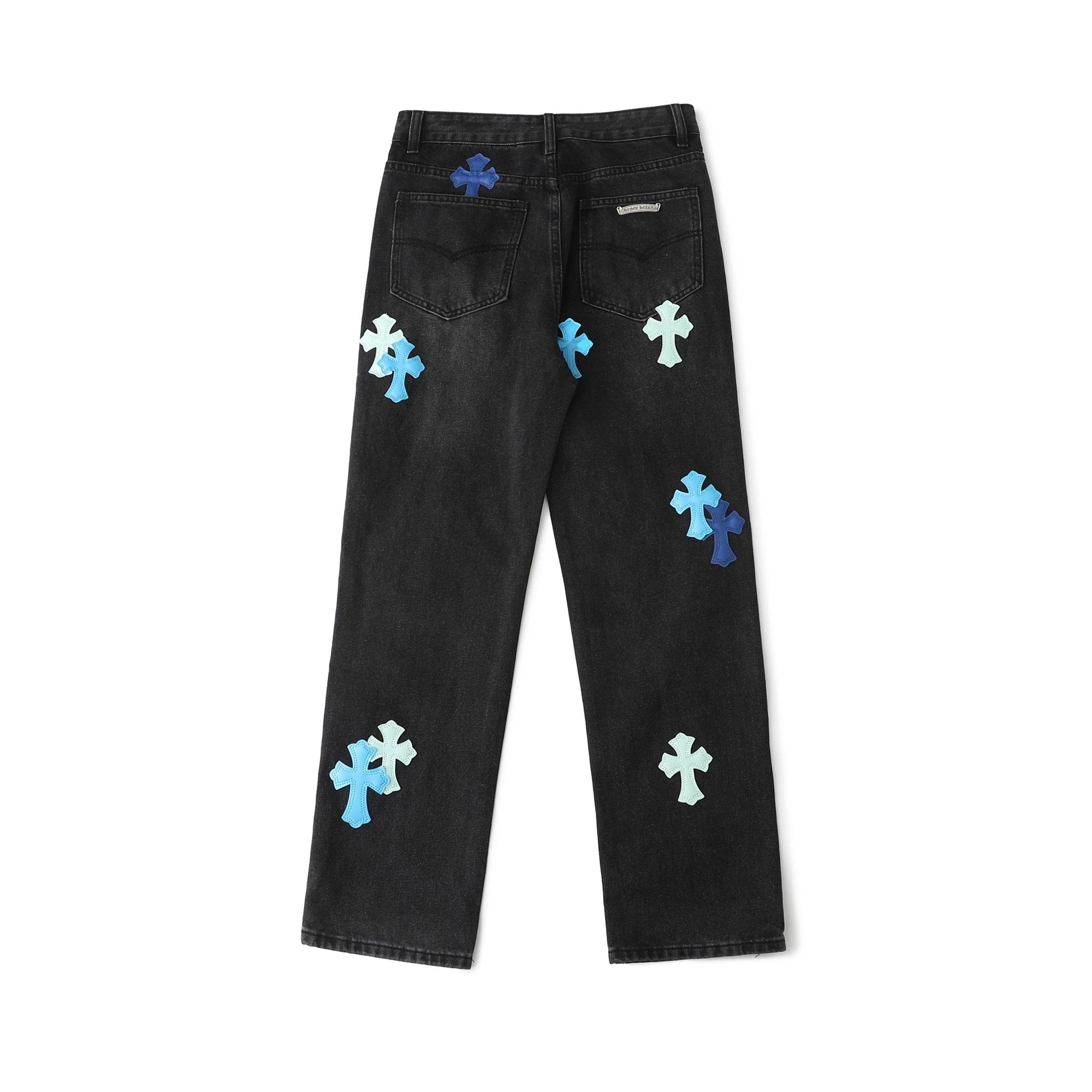 Chrome Hearts Jeans Front and back light and dark blue cross patches logo25ss Spring Summer New Straight Loose Slim Fit Jeans Unisex Long Pants