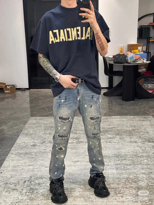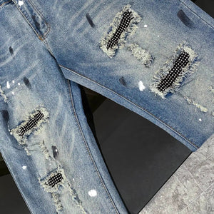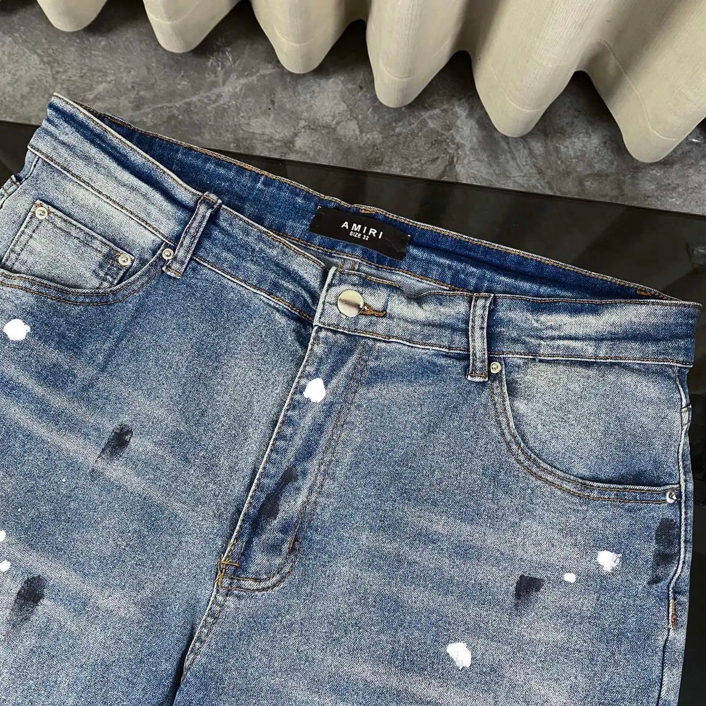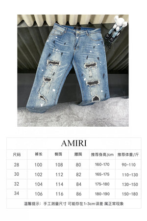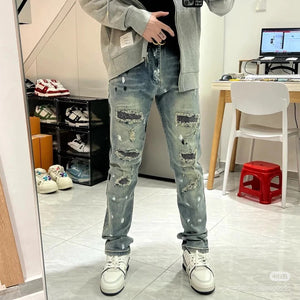Amiri Distressed Ink Splash Patch Jeans High Street Slim Fit Jeans Vintage Distressed High Street Slim Fit Jeans Long Pants -**