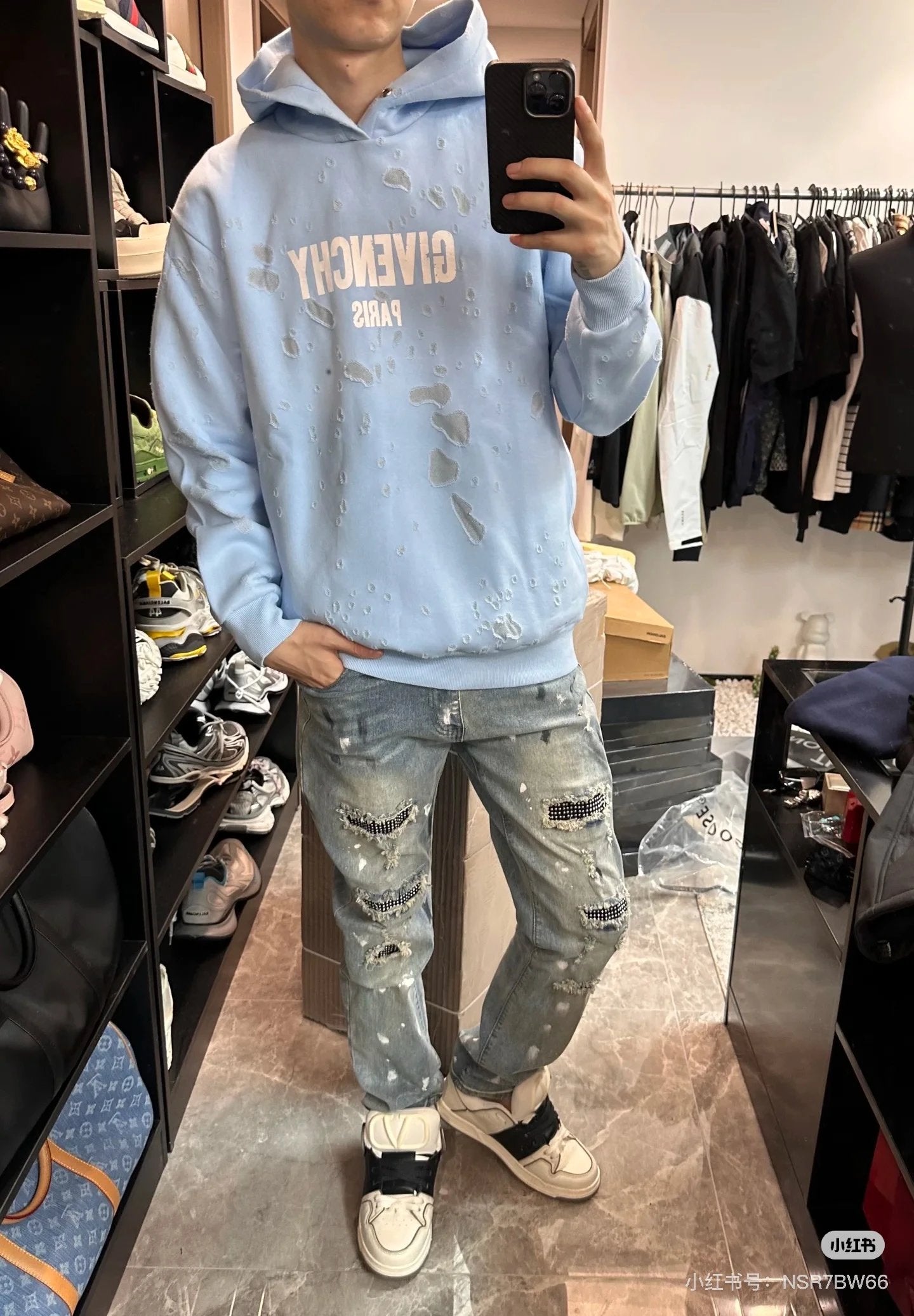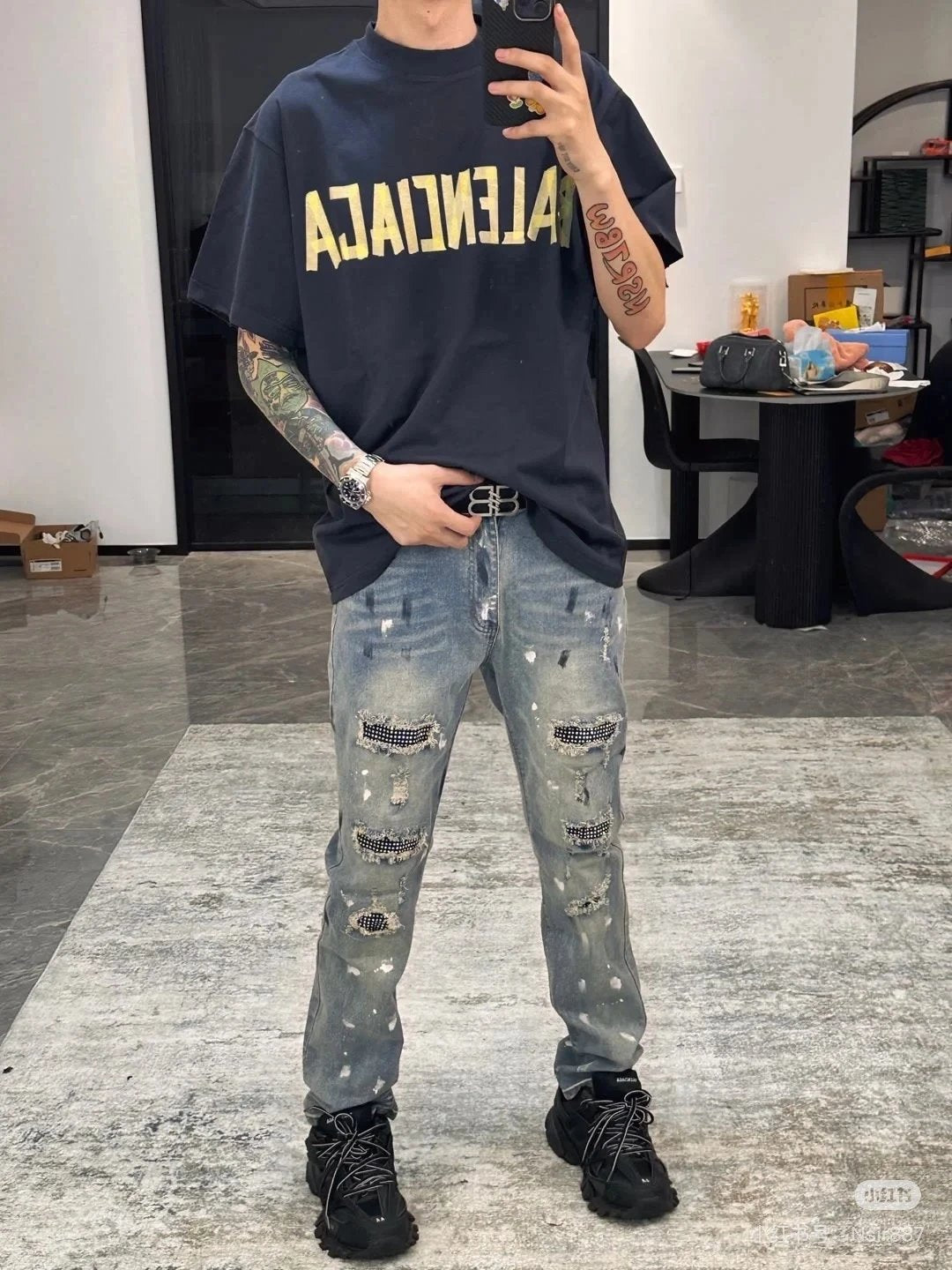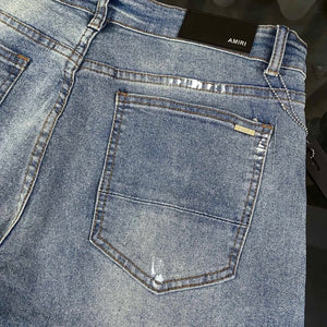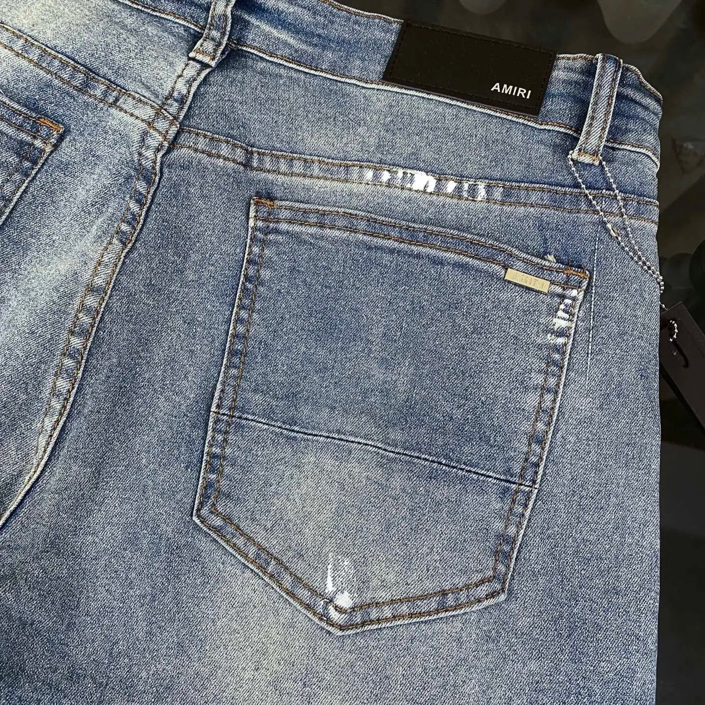Amiri brand jeans break the traditional jeans-making process and cut; the fabric is relatively soft and comfortable, not stiff like some jeans that irritate the skin when worn, causing it to bleed.Los Angeles trendy brand Amiri's jeans are meticulously crafted from tailoring to texture, incorporating details like pleats, distressed holes, and destruction to enhance their fashion sense.You can choose a style that suits you according to your needs; wearing a suitable style has a certain fashion sense.