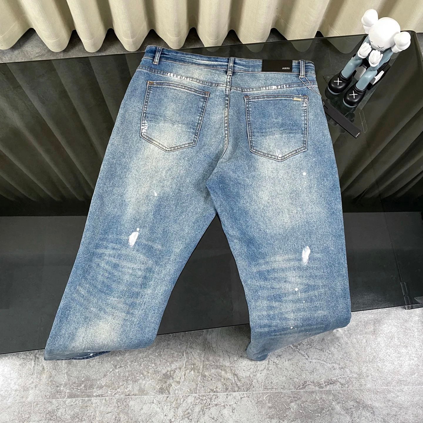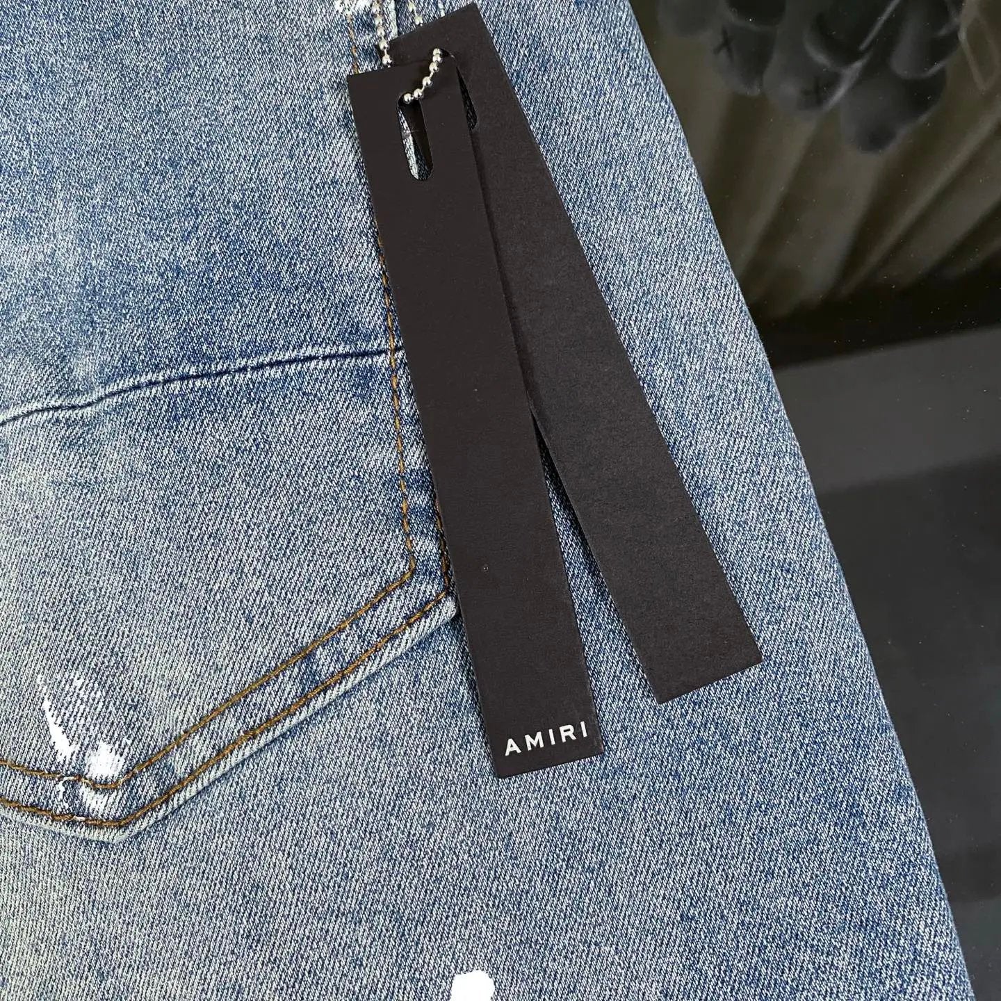 Amiri Jeans Front and Rear Holes Splash-Ink Patch logo25ss Spring Summer New Straight Loose Jeans Unisex Slim Fit Long Pants
