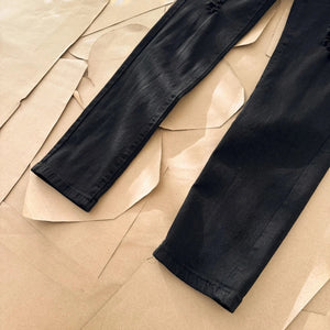 Washing Factory's Full B1138 High-Grade Knee Part Damage Design Matching Leather Patchwork Design Has Been Used as the Facade Design Leather Waist Nameplate This Model Does Not Focus on Washing, it Lies in the Shape of the Damage and the Secret of the Version, Which All Lie in the Craftsmanship of the Master. the Cost of Hand-Made Products Such as Post-Wear, Horse Riding, Knife Cutting, Etc. Is Far from Comparable to Those of Assembly Line Products.