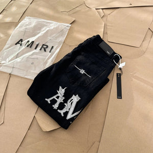Amiri Jeans Front and Rear Letter Patch logo25ss Spring Summer New Straight Leg Jeans Unisex Slim Fit Long Pants Loose