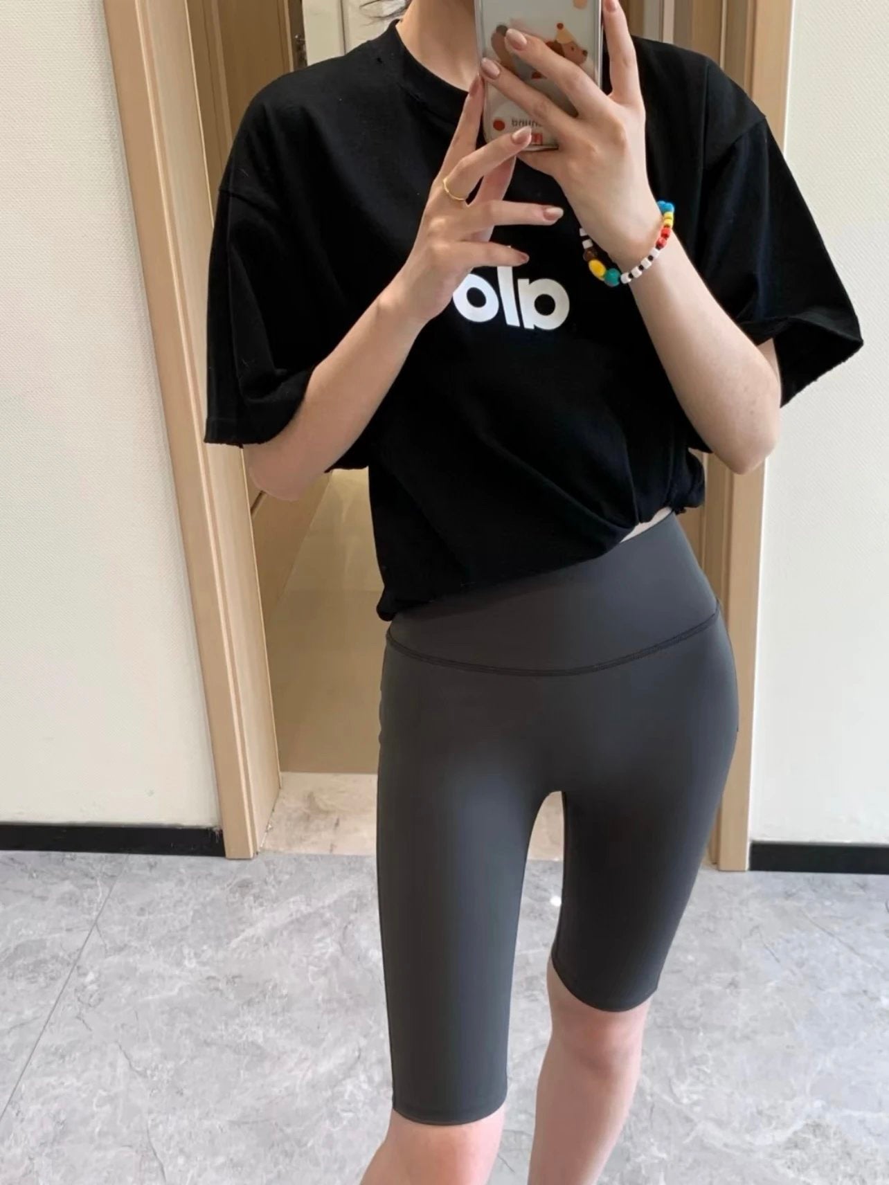Front Three-Dimensional Reflective Logo Yoga Shorts Five-Point Shorts 25SS New Drawstring Casual Five-Point Shorts Casual Sports Shorts Summer Women's Pure Cotton Sweatpants