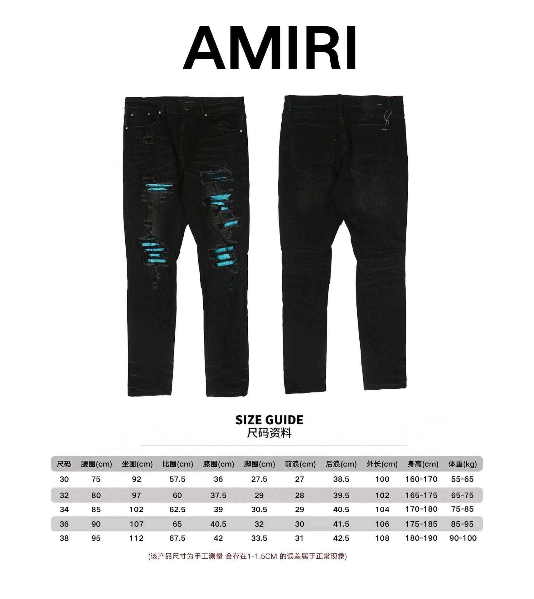 AMIRI & Amir 24ss Blue Patch? Hot-Selling High Street Jeans Slim Fit Stretch Washed Knife Cut Ripped Long Pants FOG High Street Men's Fashion AMIRI
