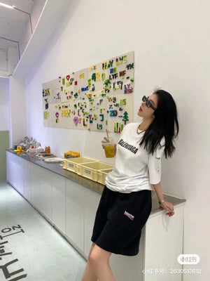 Balenciaga Shorts Front Body Cola Letter Embroidery logo Five-point Shorts25ss New Drawstring Casual Summer Pants American Style5Two-in-One Casual Sweatpants for Men and Women, Pure Cotton Joggers