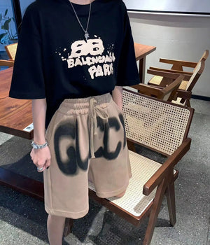 Balenciaga Shorts Front Body Letter Print logo Five-point Shorts25ss New Drawstring Casual5Two-Piece Casual Sweatpants Summer Pants Unisex Pure Cotton Sweatpants