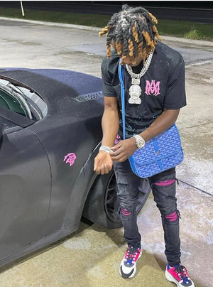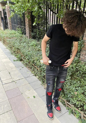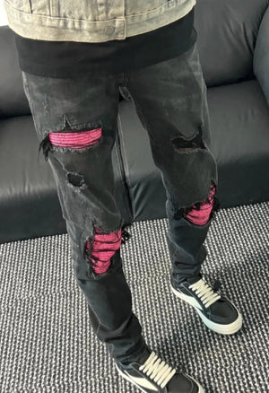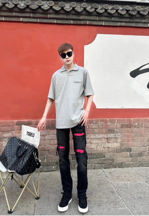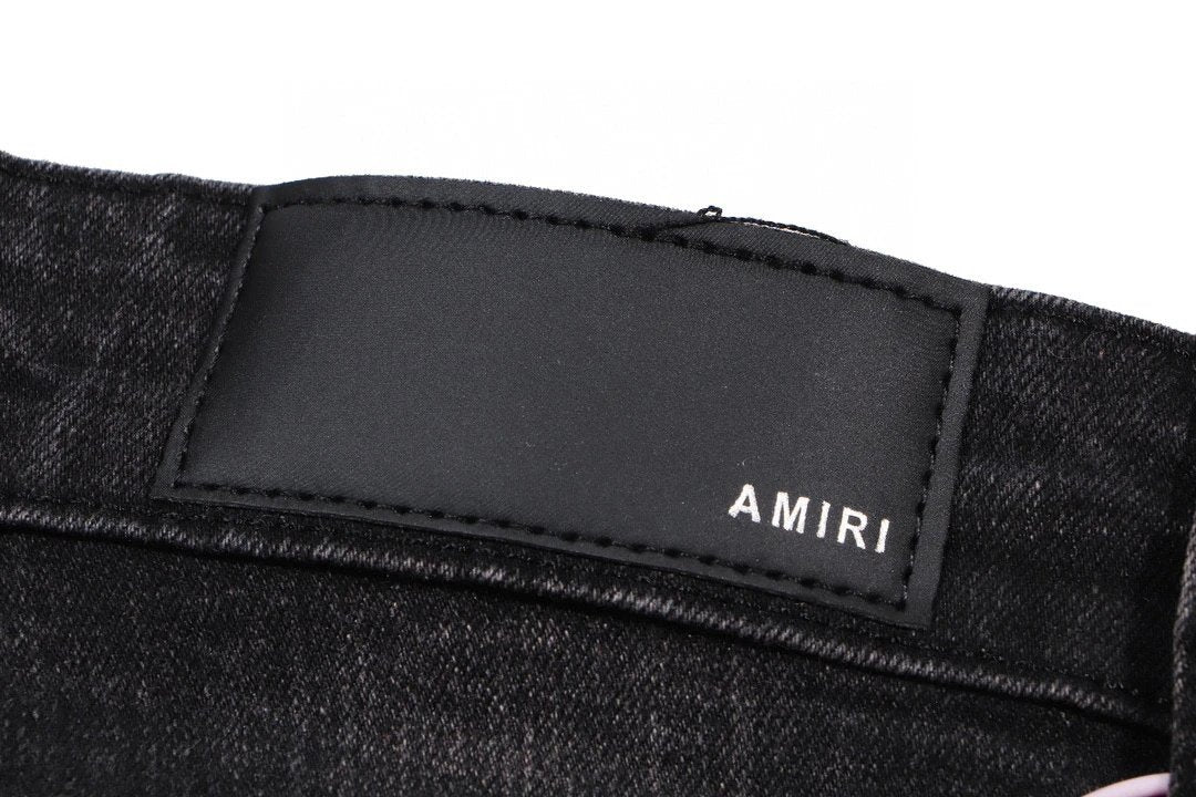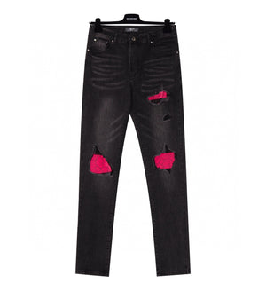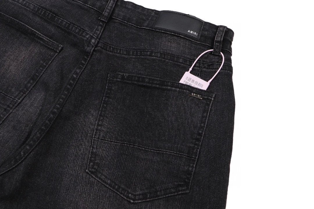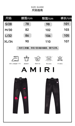 Amiri Jeans Front body pink genuine leather print logo25ss Spring Summer New Straight Slim Fit Jeans Unisex Loose Fit Long Pants