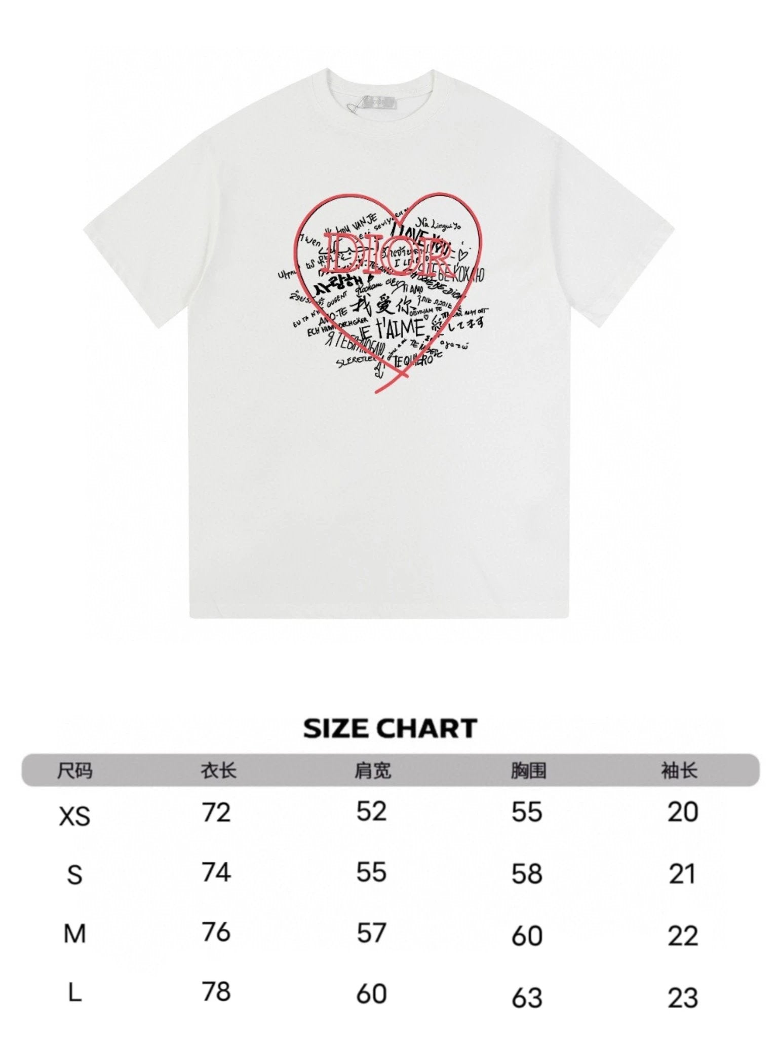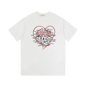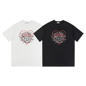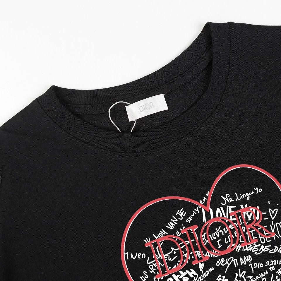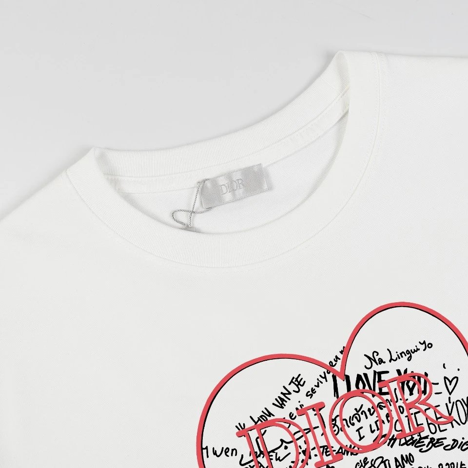 Dior T-shirt Front Color-Block Heart Print logo round Neck Short Sleeve25ss New pure cotton T Unisex T-Shirt OS Loose Fit Base Shirt Top Half Sleeve T-Shirt