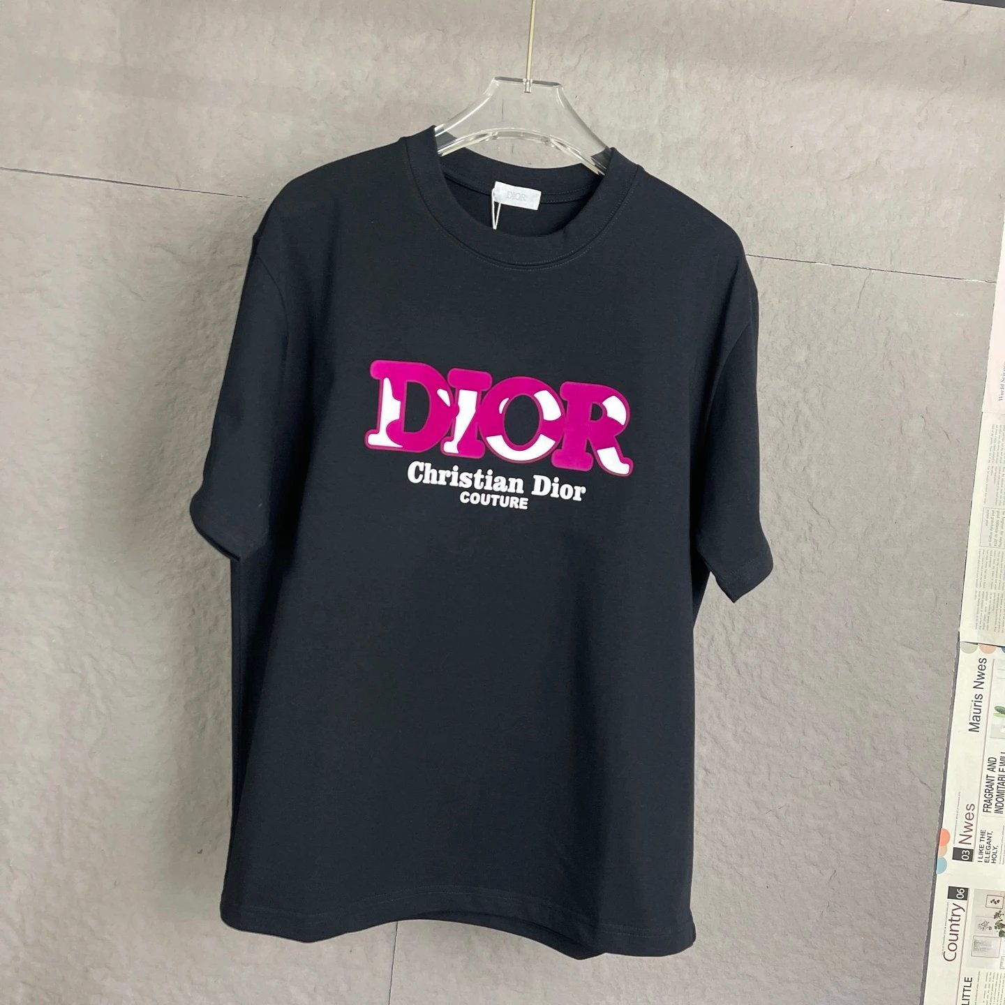 Dior T-shirt Front Color-Block Letter Print logo round Neck Short Sleeve25ss New pure cotton T Unisex T-Shirt OS Loose Fit Base Shirt Top Half Sleeve T-Shirt