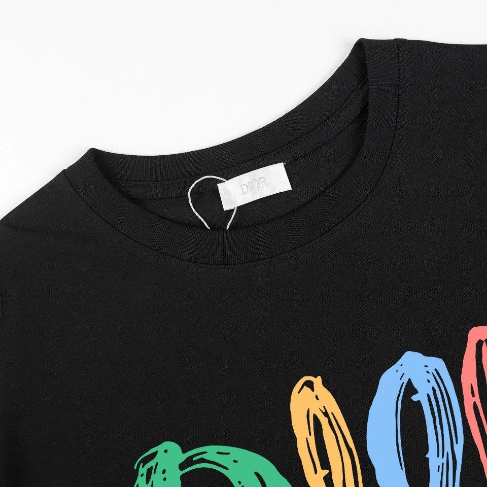 Dior 24ss Counter Same Style Round Neck Short Sleeve T-Shirt Custom Cotton 260g Double Yarn Fabric! Featuring Brand Logo Contrast Print Pattern! Custom Fabric Provided by Customer ~ Thick Three-Dimensional Fabric! The Thick Fabric Enhances the Overall Breathability and Softness, Full Cotton Texture Brings Extreme Comfort.A must-have item for high-end individuals, complete with original factory accessories and three labels! Unisex!