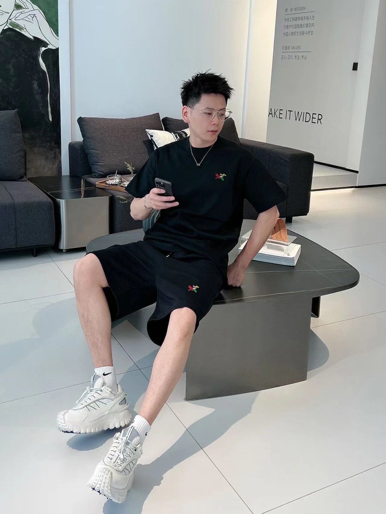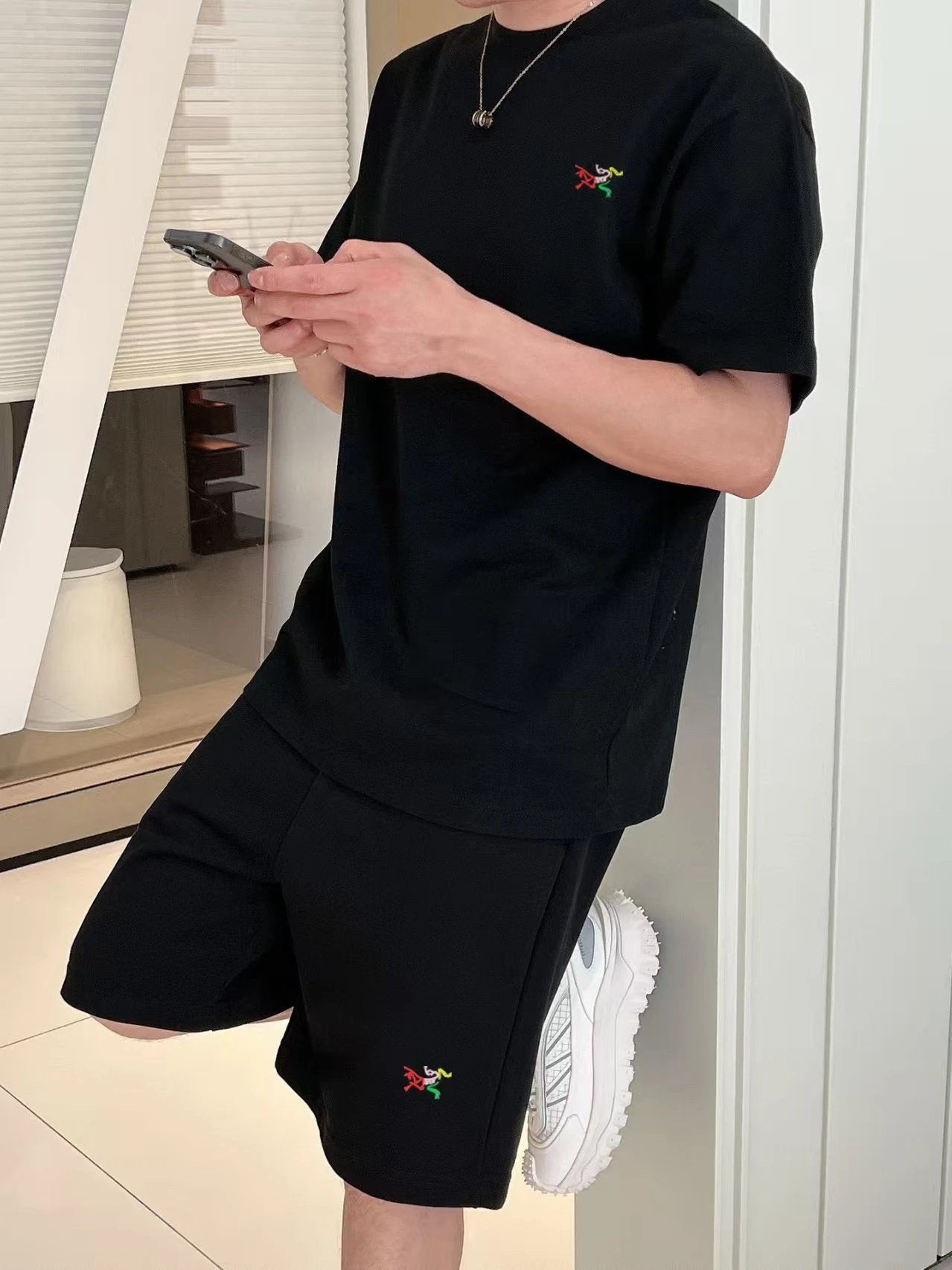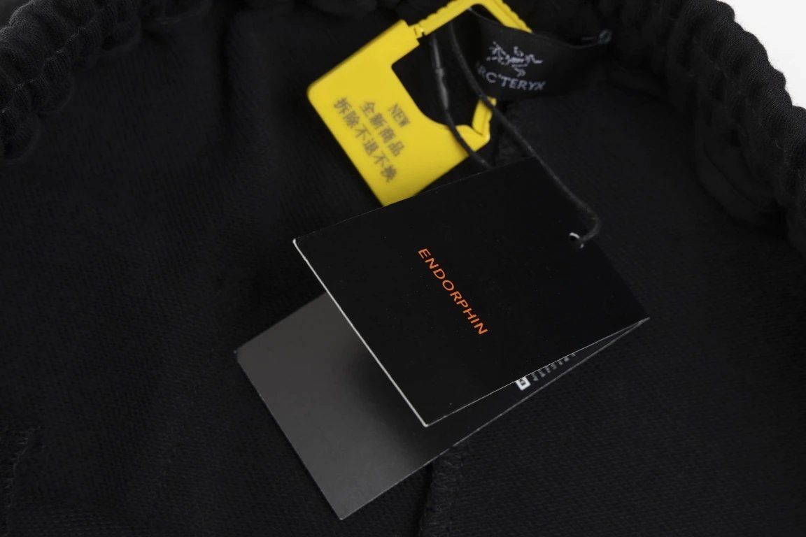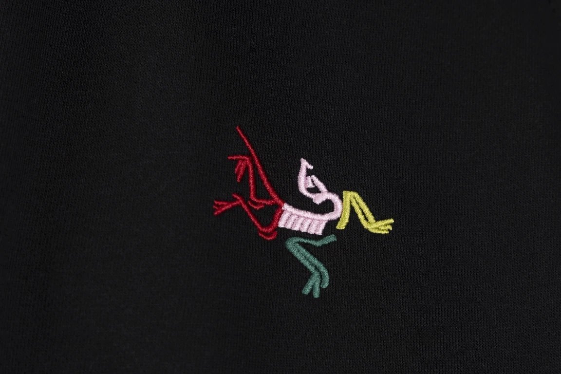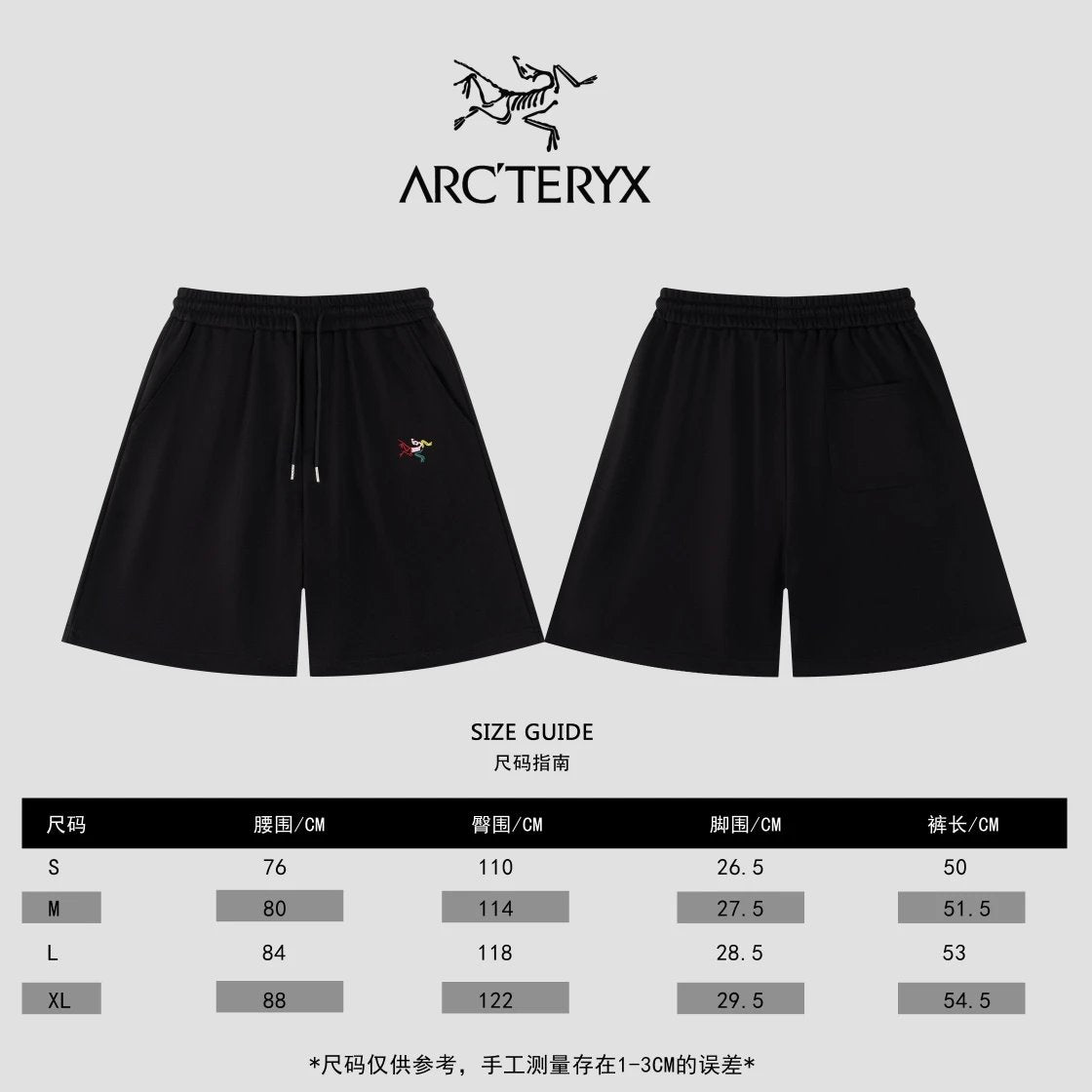 Original Arc'teryx Custom Shorts, Crafted from Activated Black Pure Cotton Terry Fabric, Elastic Waistband, Decorated with Exquisite Colorful Logo Embroidery, Loose Fit Comfortable to Wear, Versatile Essential.