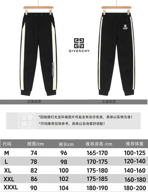 Givenchy Sweatpants Front Double Bar Letter Print logo Cuffed Sweatpants25ss Spring Summer New Unisex Pure Cotton Long Pants Sweatpants Autumn Drawstring Loose Plus Size Casual Pants