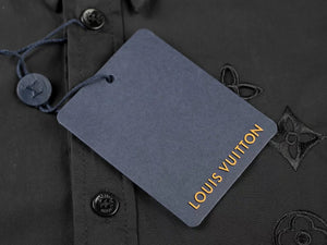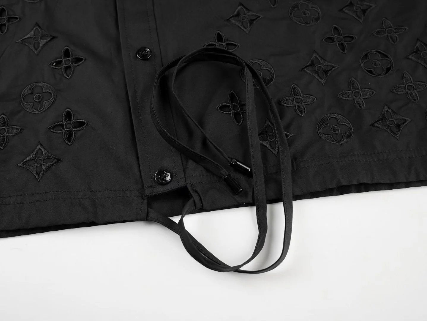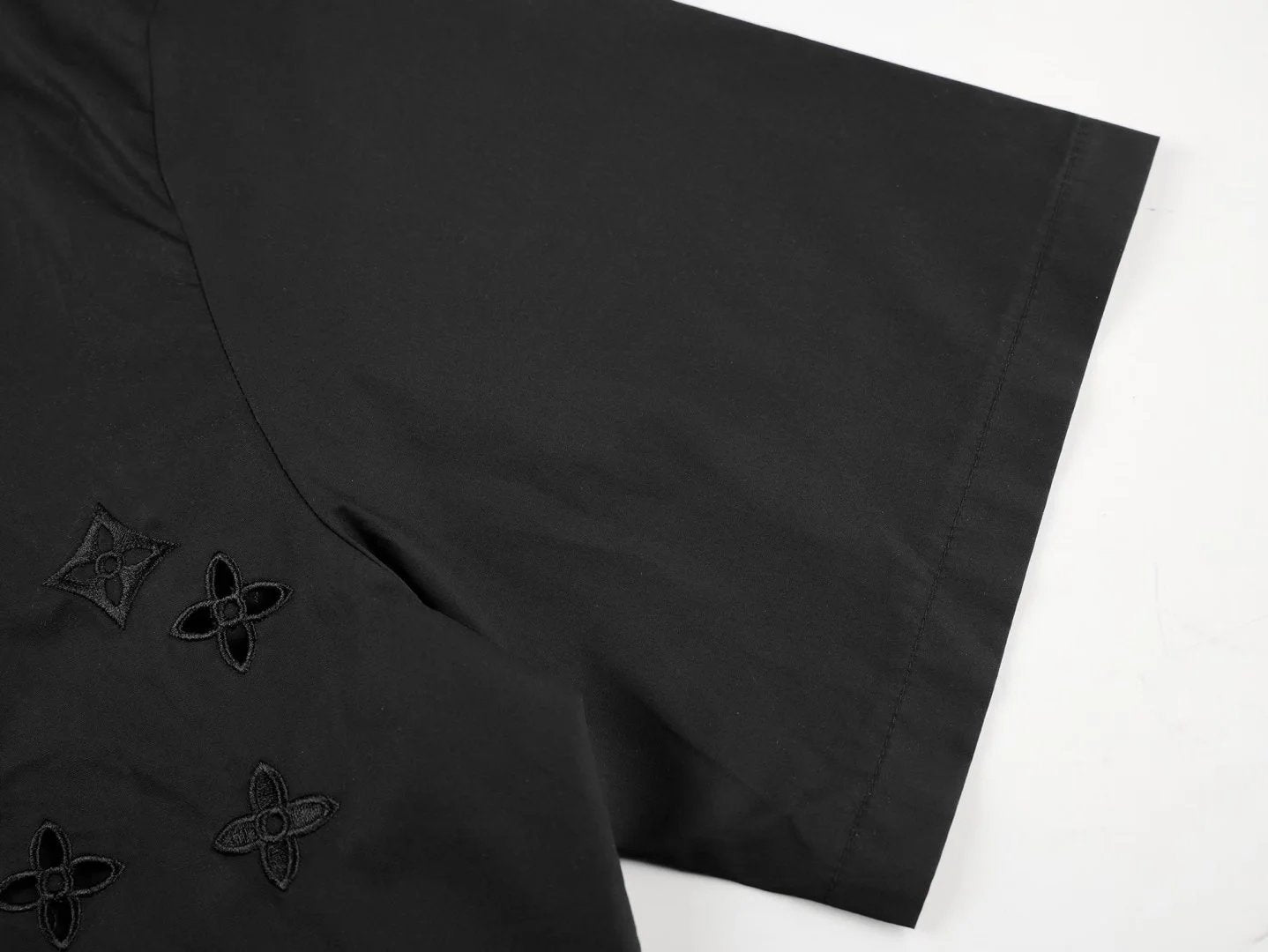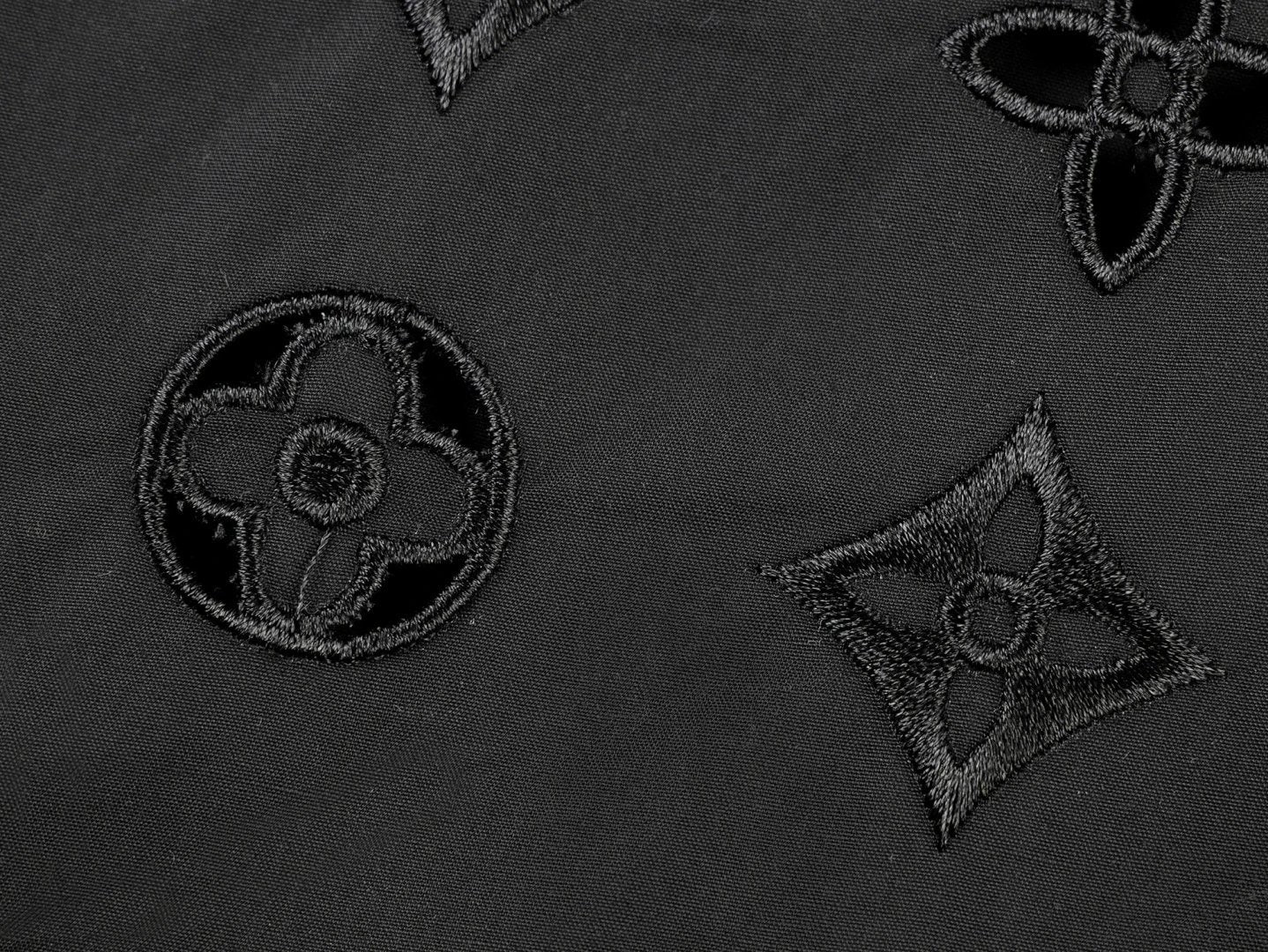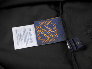 Embroidery➕Cut Out's short-sleeved shirt is reinterpreted with a drawstring waistband and decorative Embroider.The smooth black shirt features an English-style monogram embroidery in the same color scheme, presenting an elegant gradient effect and cleverly incorporating the LV logo. The back is adorned with a Marque L.Vuitton Déposée patch.This versatile piece adds a fashionable and avant-garde touch to the series' academic style appearance.