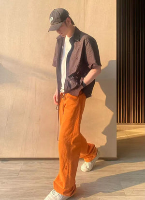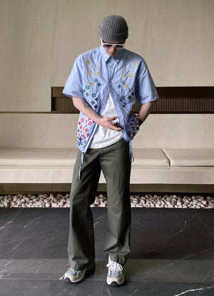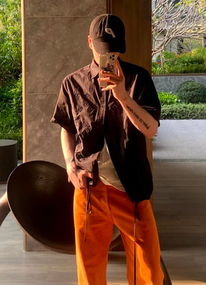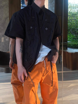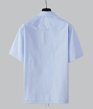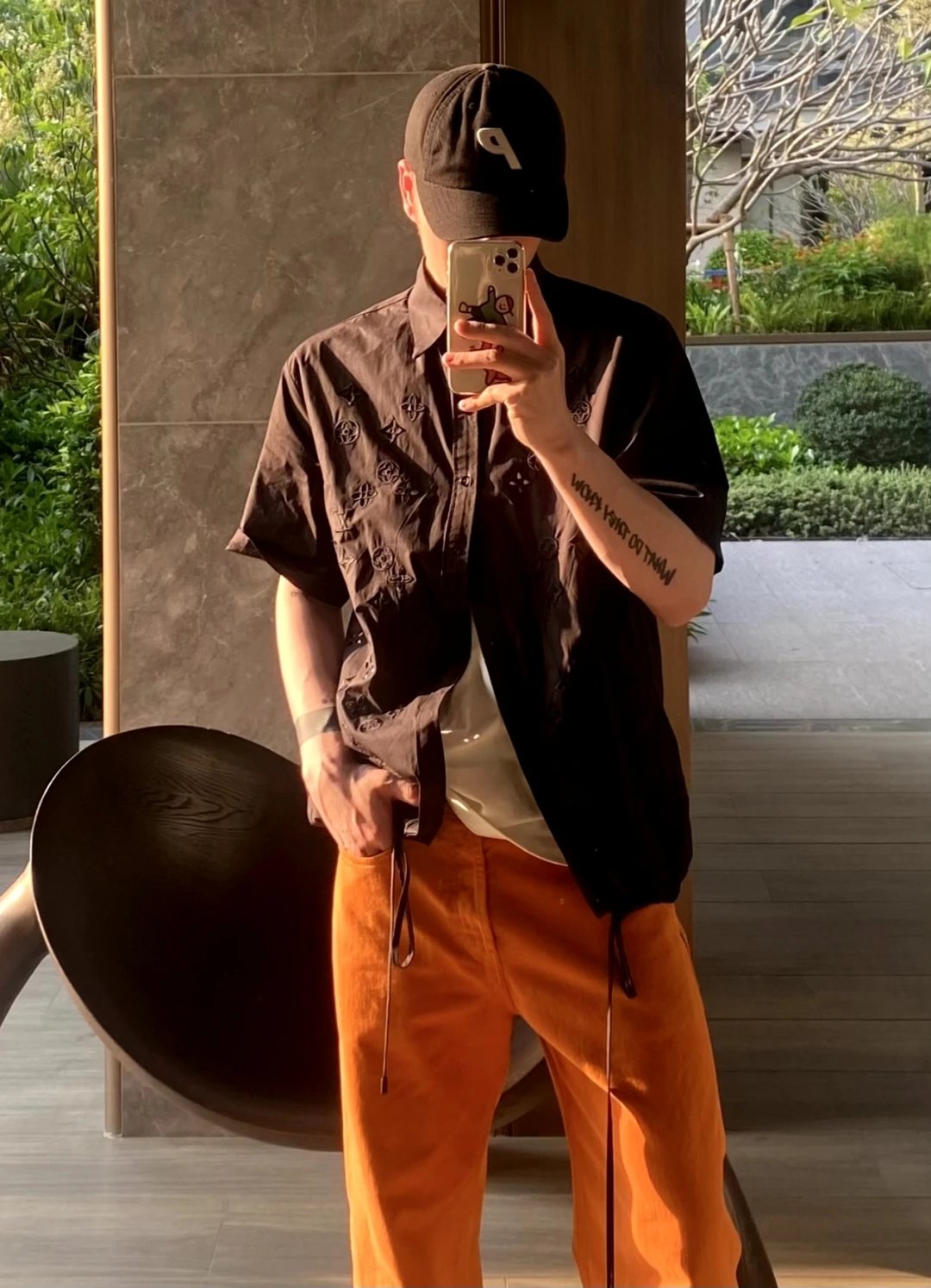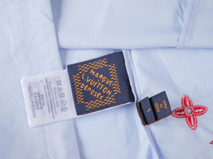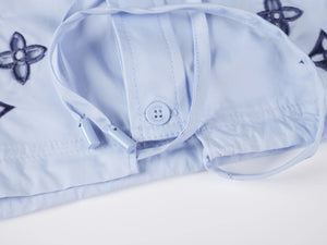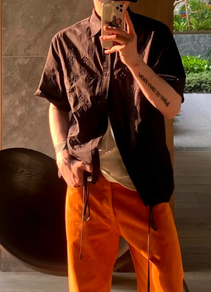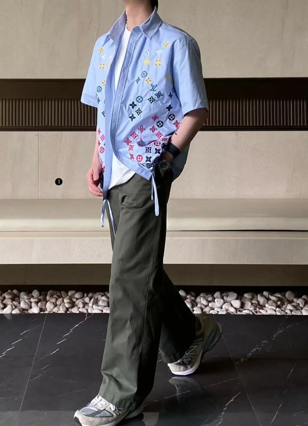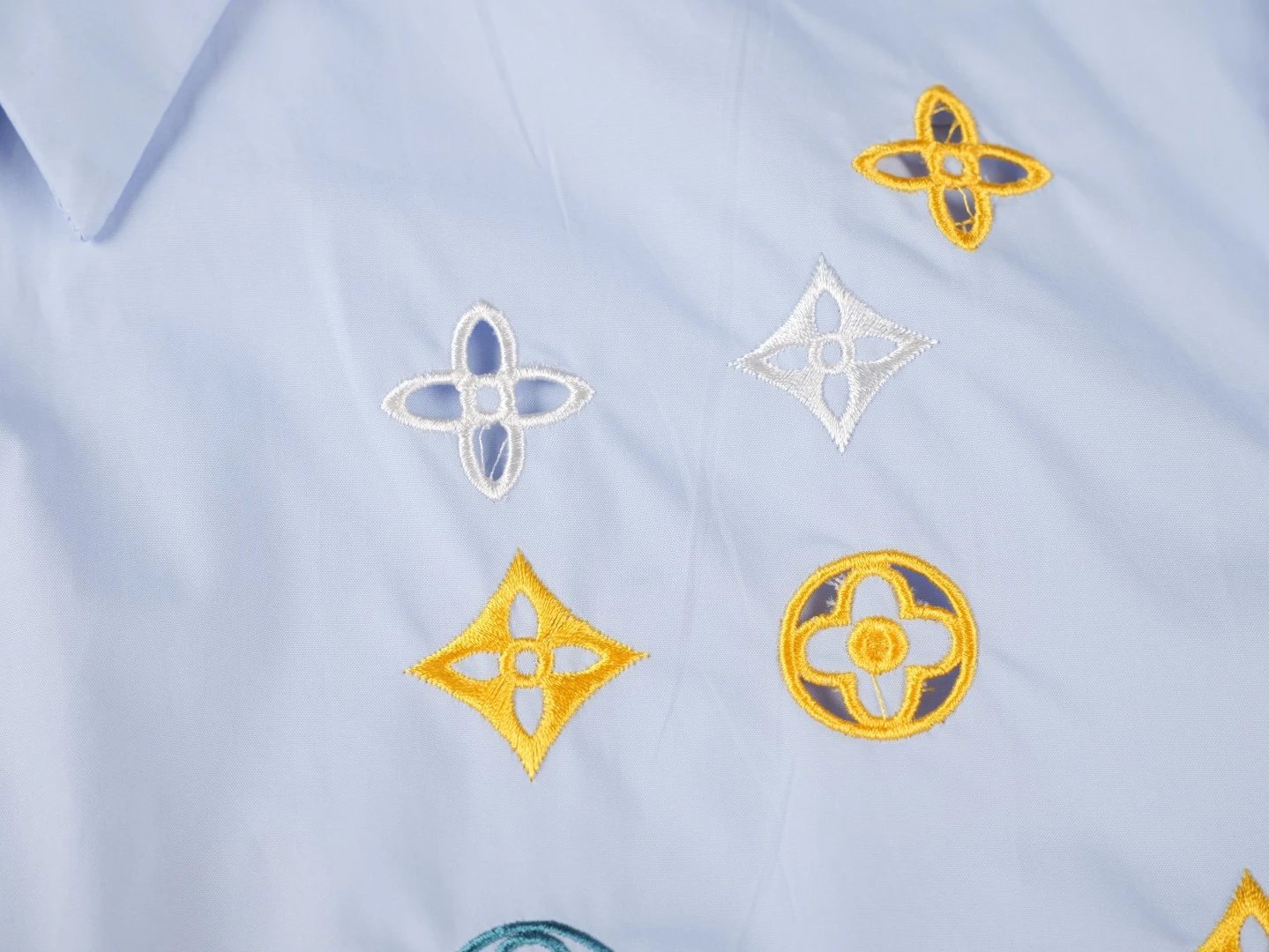 Embroidery➕Cut Out's short-sleeved shirt is reinterpreted with a drawstring waistband and decorative Embroider.The smooth black shirt features an English-style monogram embroidery in the same color scheme, presenting an elegant gradient effect and cleverly incorporating the LV logo. The back is adorned with a Marque L.Vuitton Déposée patch.This versatile piece adds a fashionable and avant-garde touch to the series' academic style appearance.