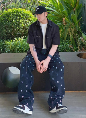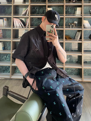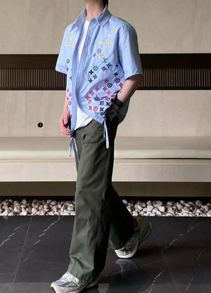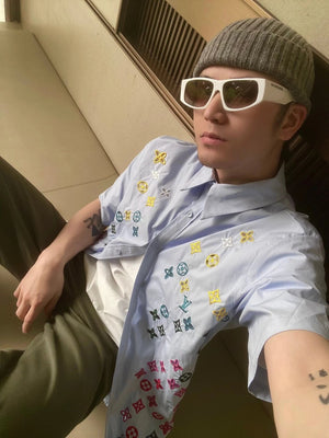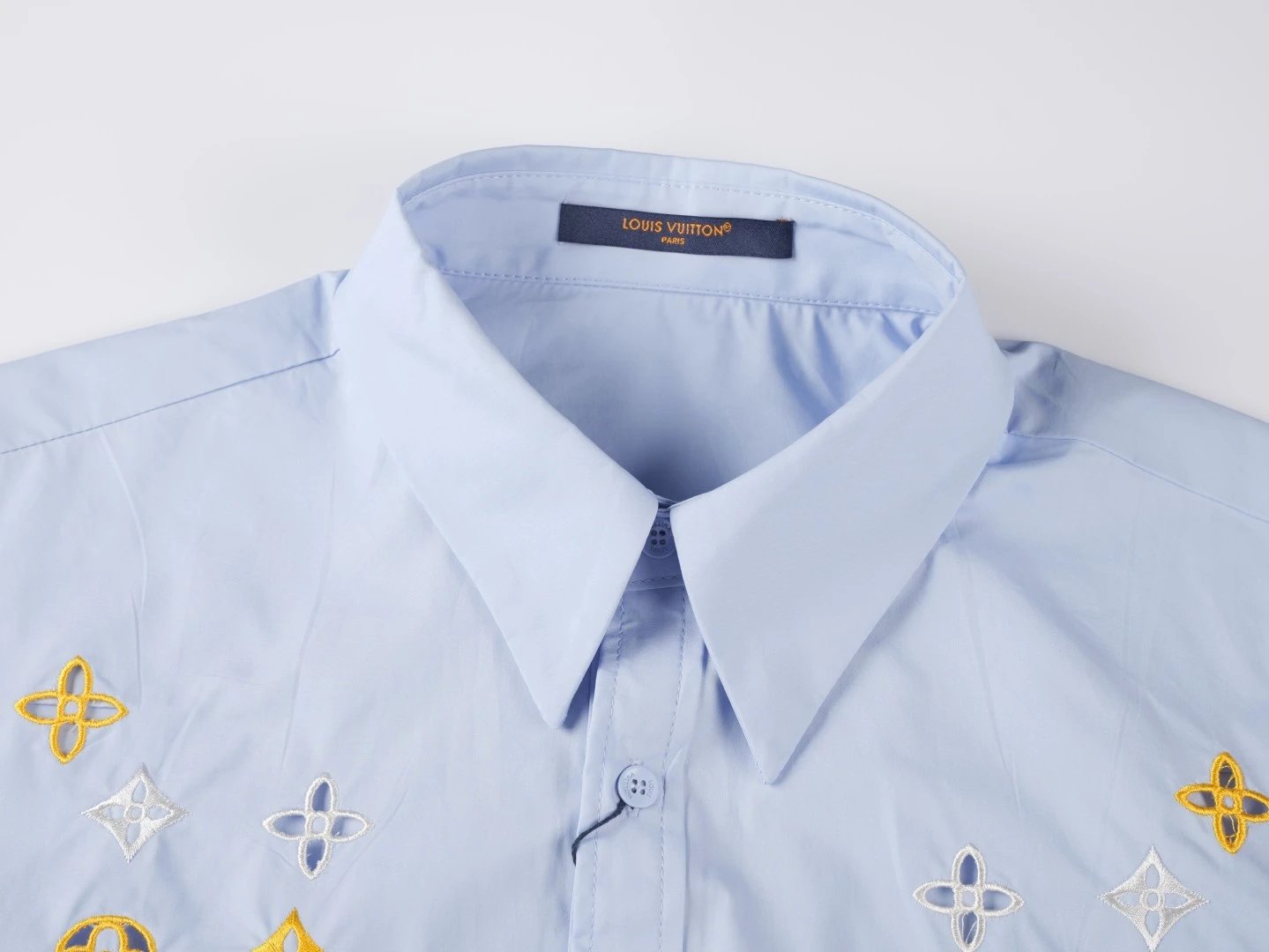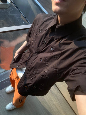 Louis Vuitton LV Shirt Front Full Print Pattern logo Shijia Turn-down Collar Short Sleeve Shirt Unisex Versatile Business Casual Slim Fit Jacket