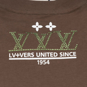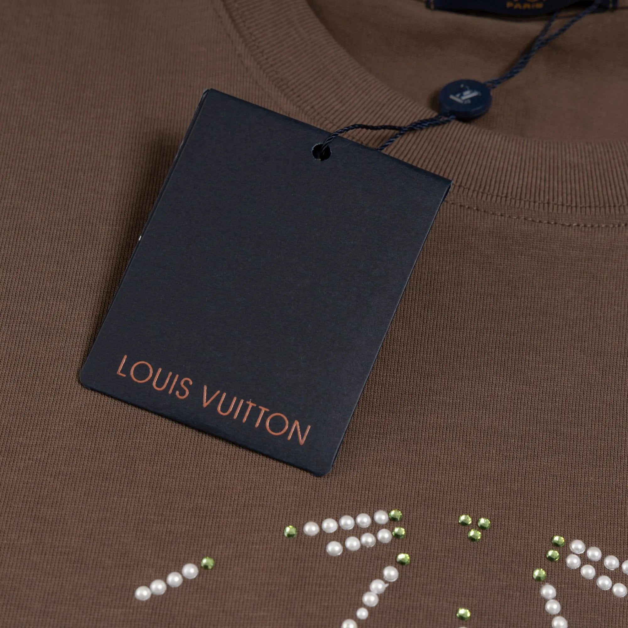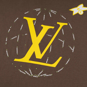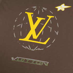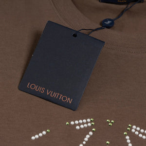 Louis Vuitton Rhinestone Letter Route Print Crew Neck Short Sleeve