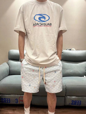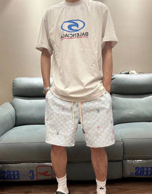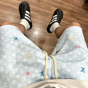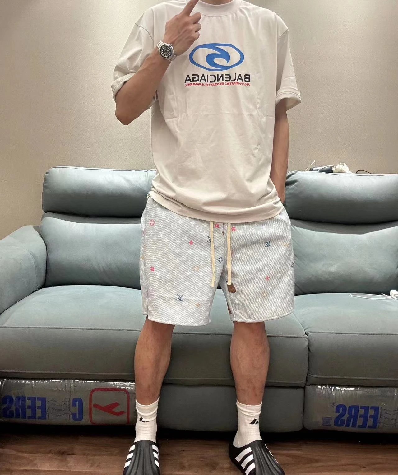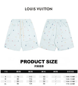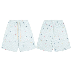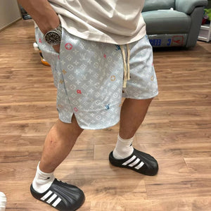 Louis Vuitton LV Shorts Full Body Painted Old Flower Full Print logo Five-point Shorts25ss New Drawstring Casual Summer Pants American Style5Two-in-One Casual Sweatpants for Men and Women, Pure Cotton Joggers
