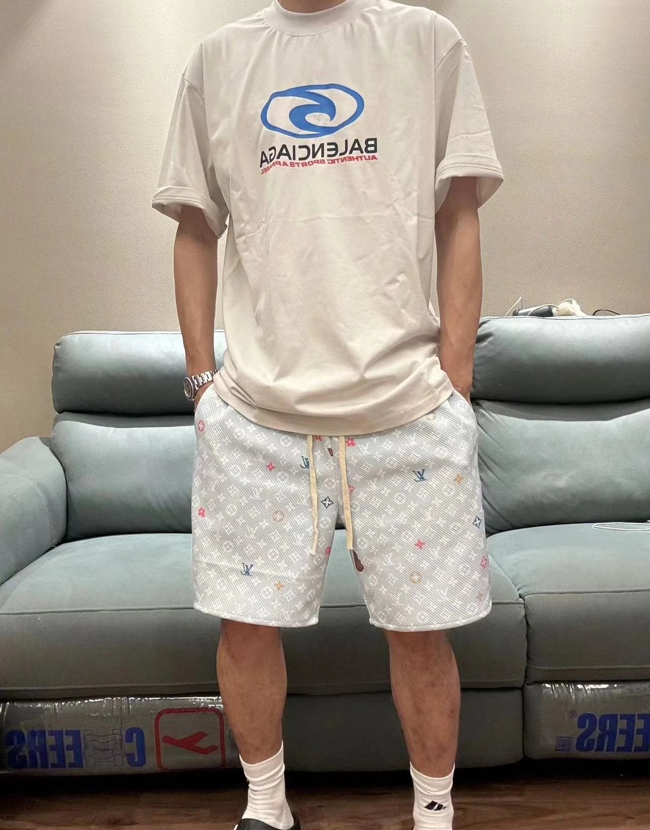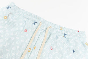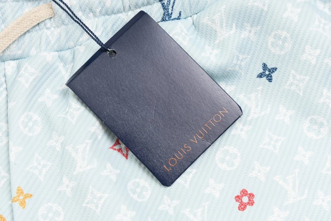 LV Summer Wardrobe Essential Fashion Item The Look Is Really Stunning So Beautiful Refreshing Feel Gorgeous Ice Cream Blue Colorful Logo Embellishment Perfect Fit Macaron Color Series Also A Favorite Among Ladies Fashionable And High-end Original Custom Logo Creation Selected Imported Twill Fabric Comfortable And Not Picky Not Sweat-inducing Pants Leg Slit Design More Sporty Slimming Large Factory Workmanship Three Labels Tags Fully Washable Unisex No Other Like It