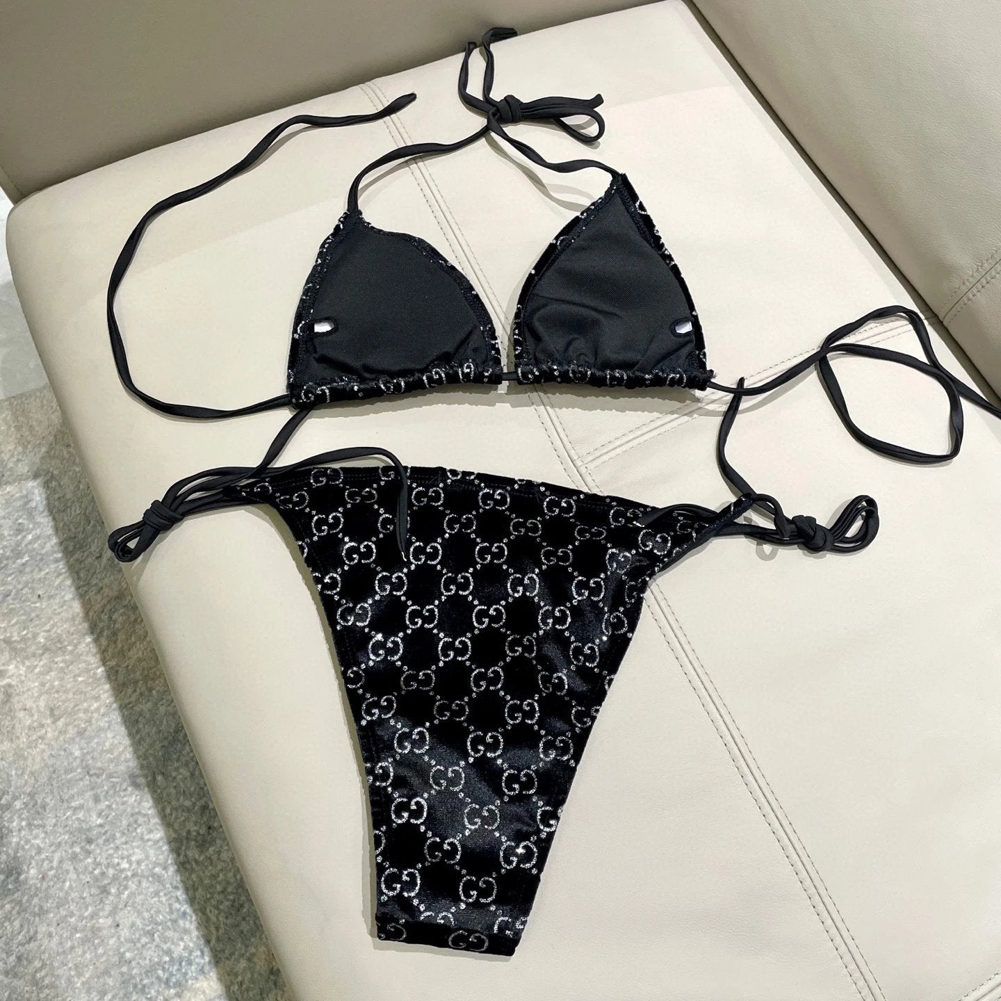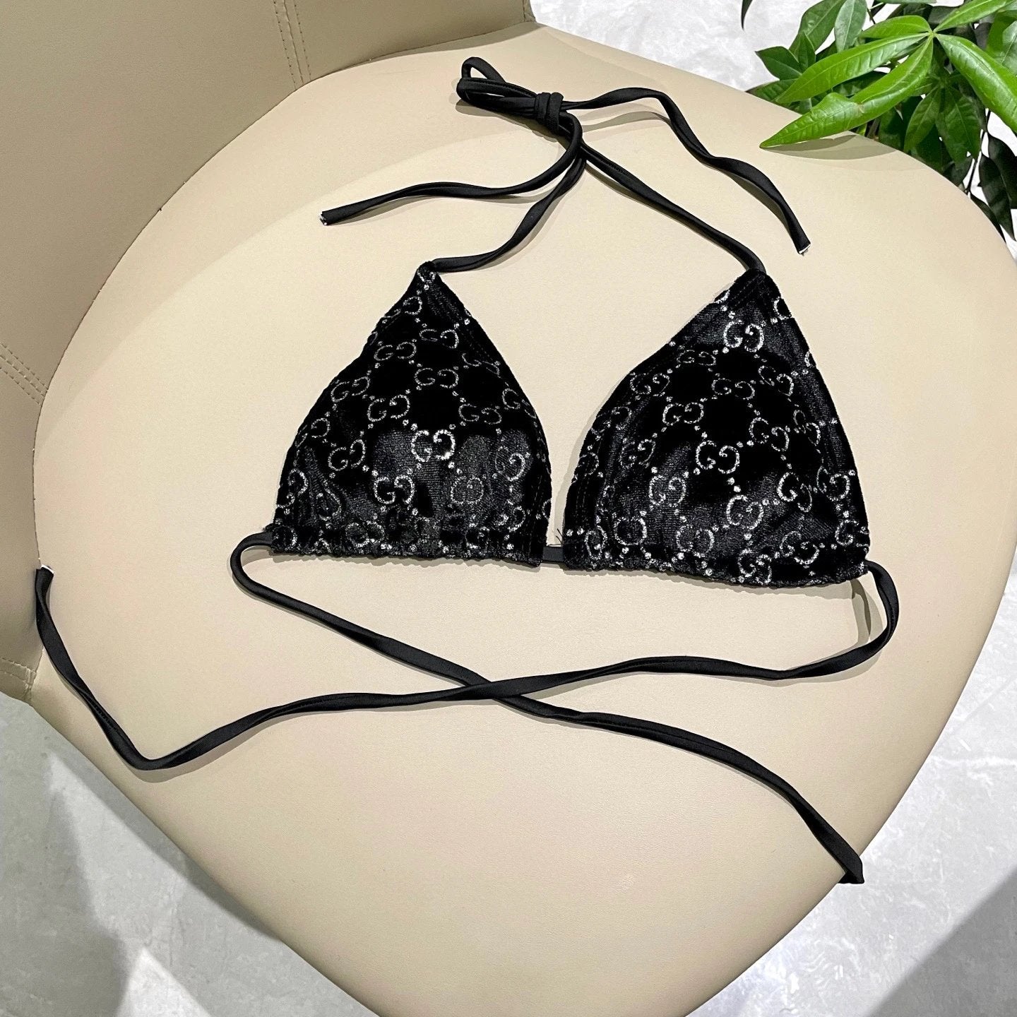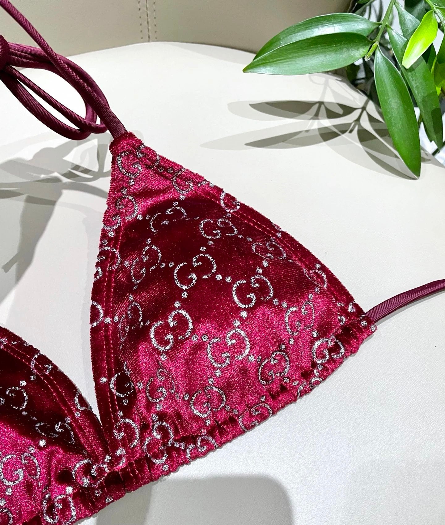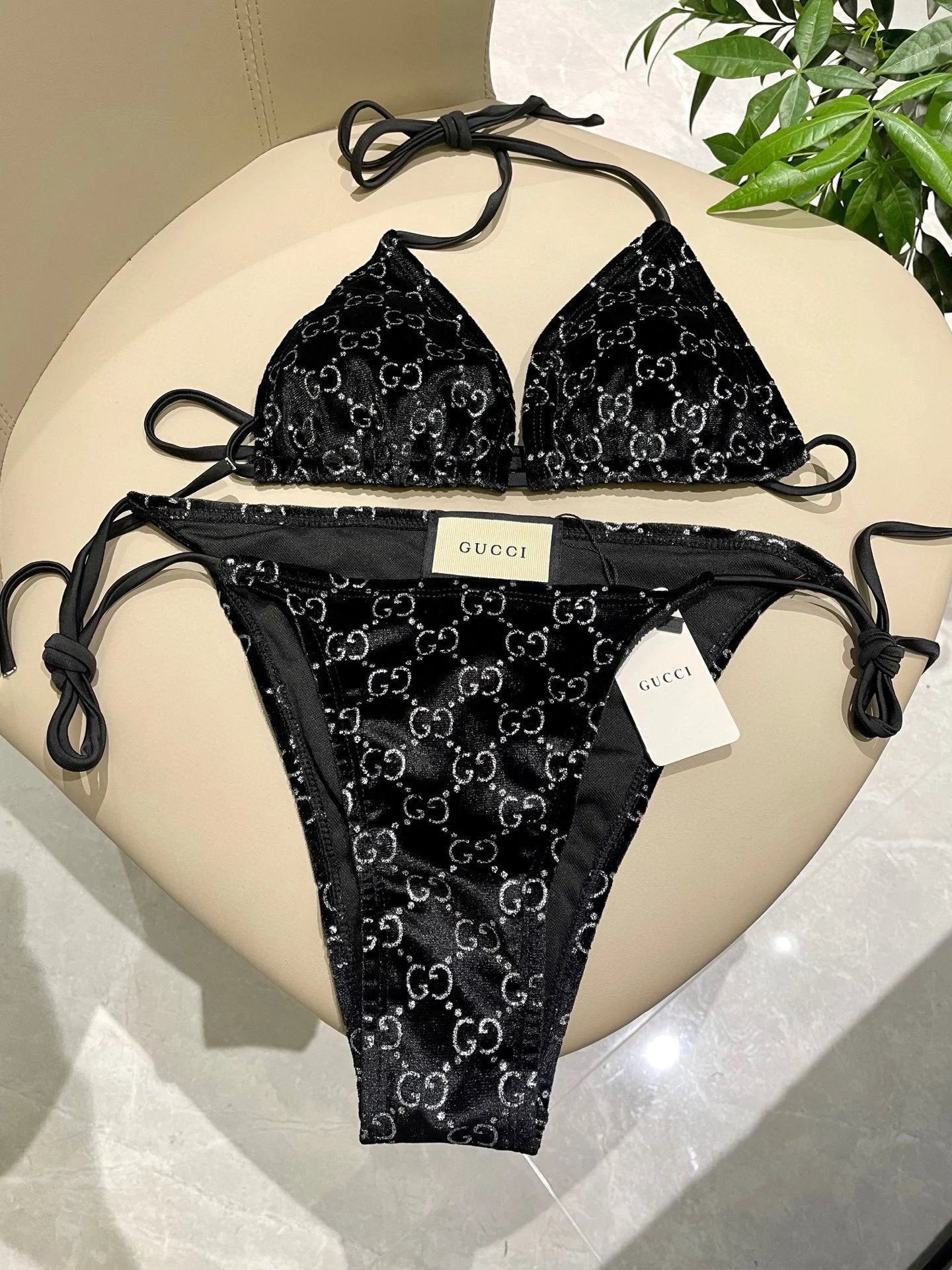Gucci Velvet Two-Piece Bikini? A swimsuit suitable for various scenarios? ♀️Beach, swimming pool, hot springs, water parks, rafting are all suitable? The inner layer is also perfectly fine. The one-piece design covers up body fat and makes you look taller; even if you have a bit of belly fat, it doesn't affect your beauty