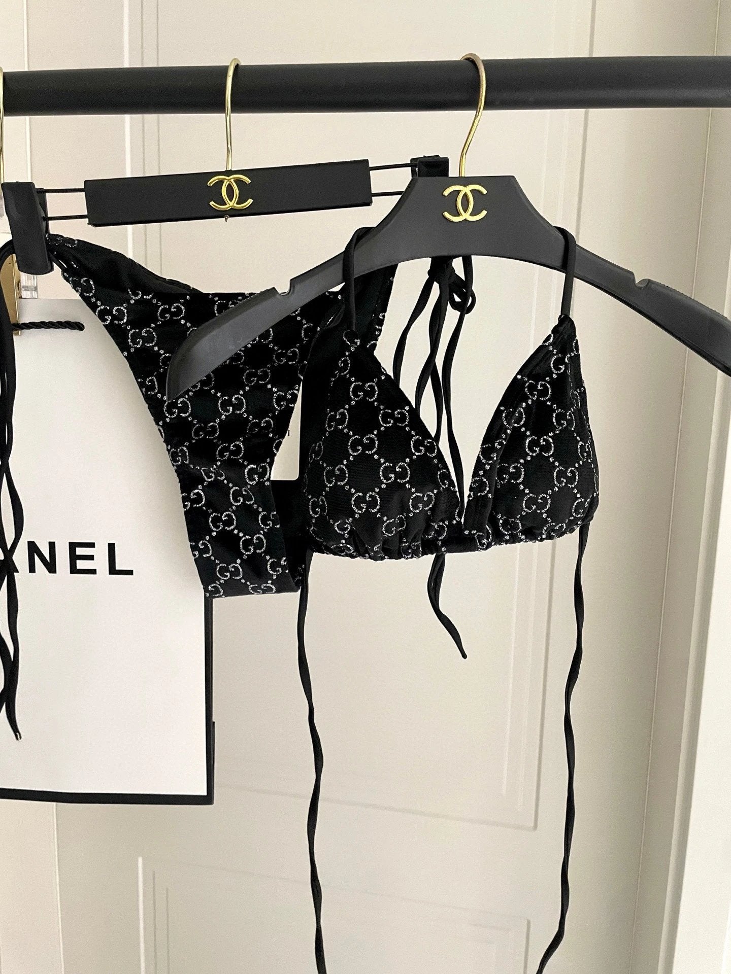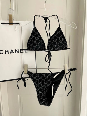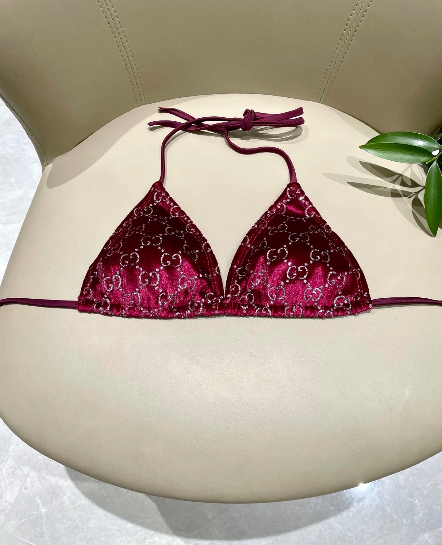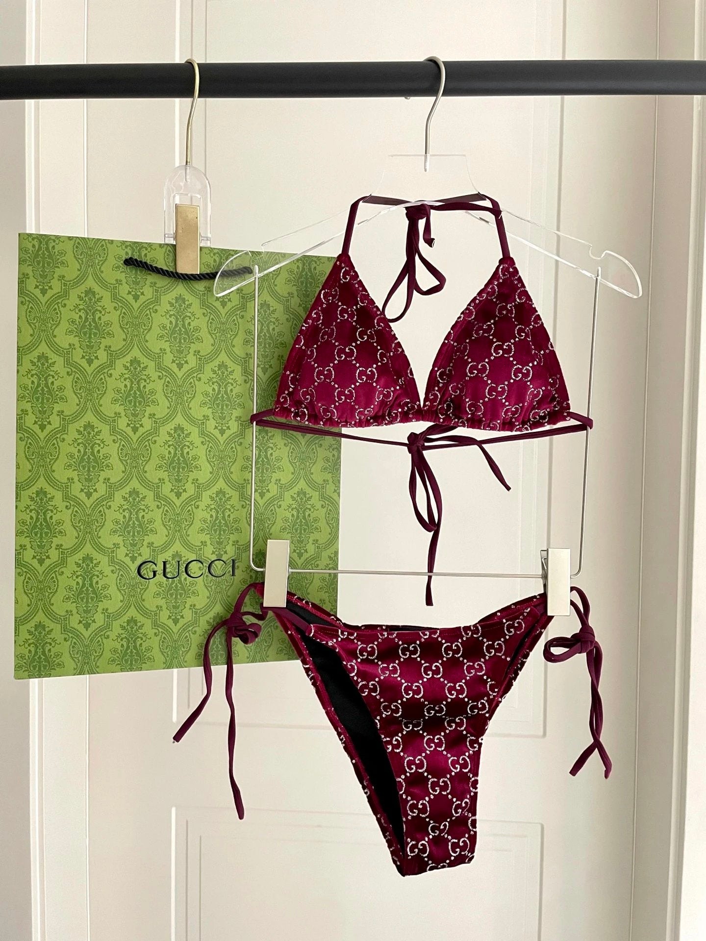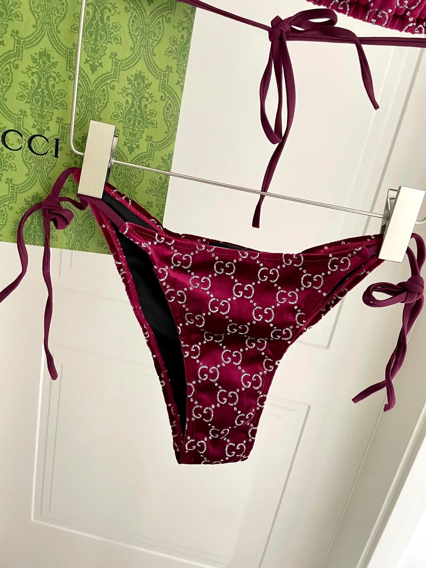 Gucci Velvet Two-Piece Bikini? A swimsuit suitable for various scenarios? ♀️Beach, swimming pool, hot springs, water parks, rafting are all suitable? The inner layer is also perfectly fine. The one-piece design covers up body fat and makes you look taller; even if you have a bit of belly fat, it doesn't affect your beauty