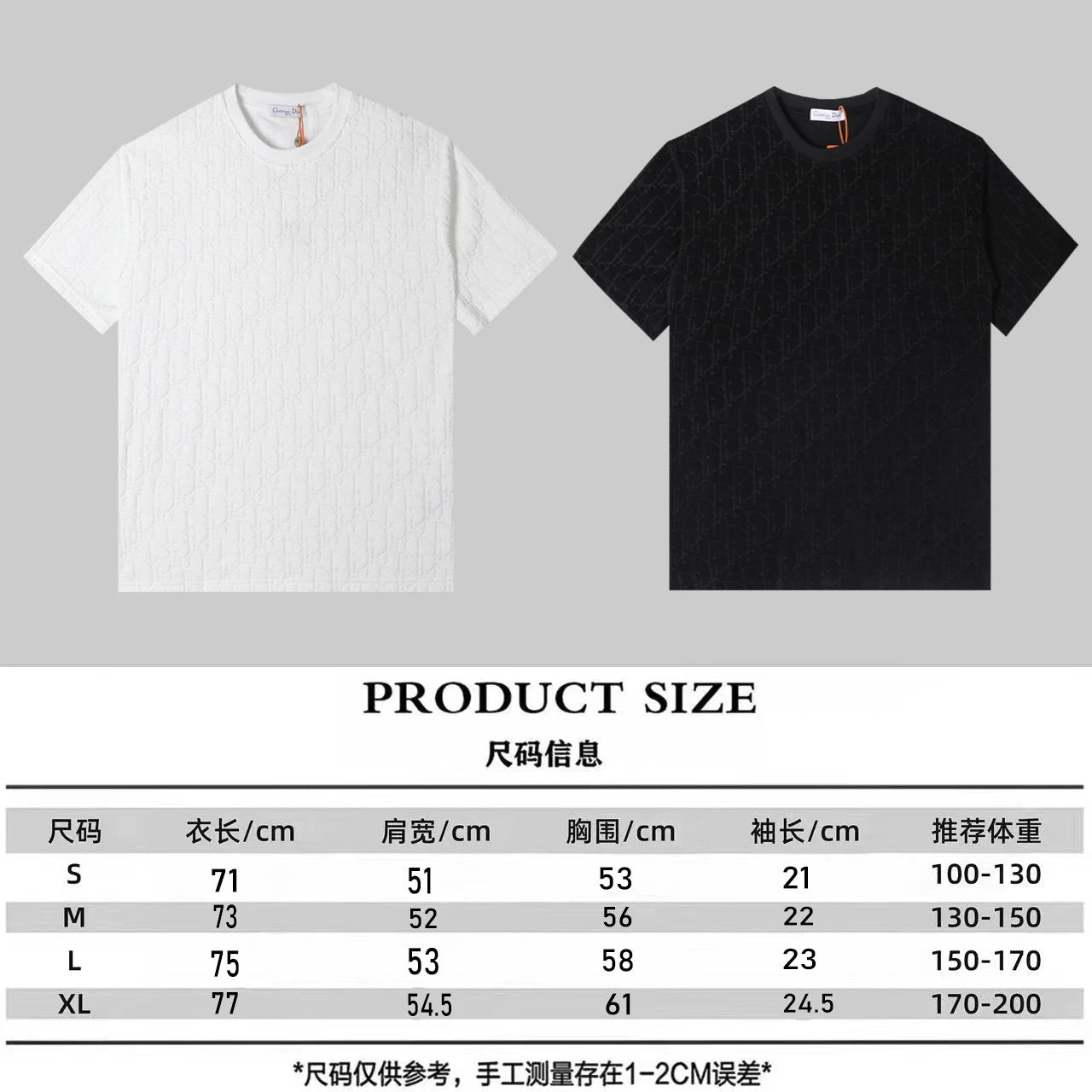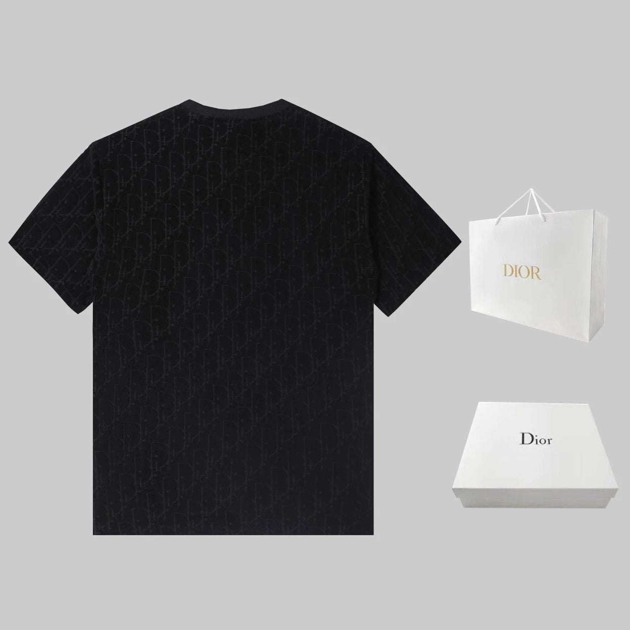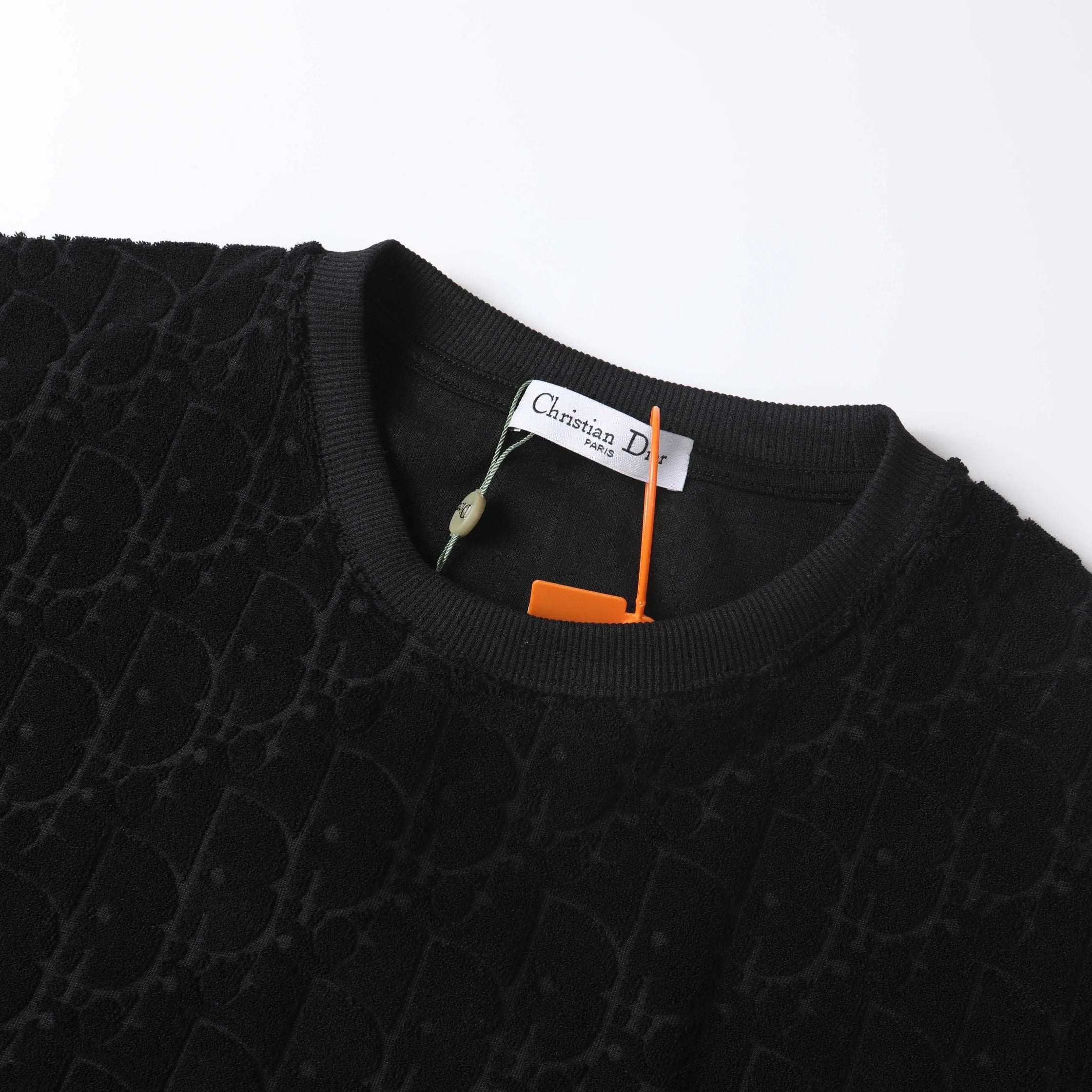 Dior T-shirt Full logo Jacquard Towel Round Neck Short Sleeve25ss New Pure Cotton Unisex Style T T-shirt OS Loose Fit Base Shirt Top Half Sleeve T-Shirt