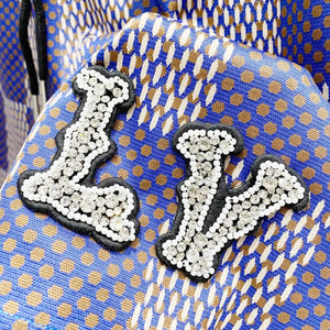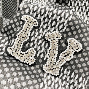 Classic Checkerboard Print Brand Hotfix Rhinestone Beaded Letter LOGO
