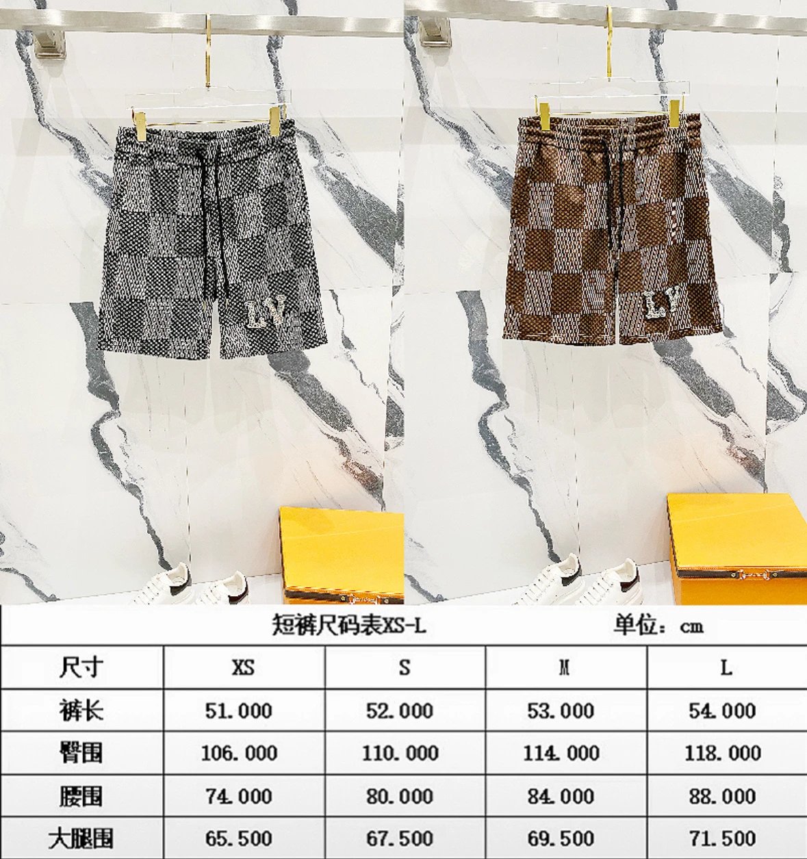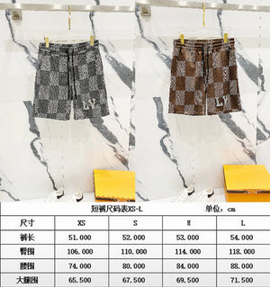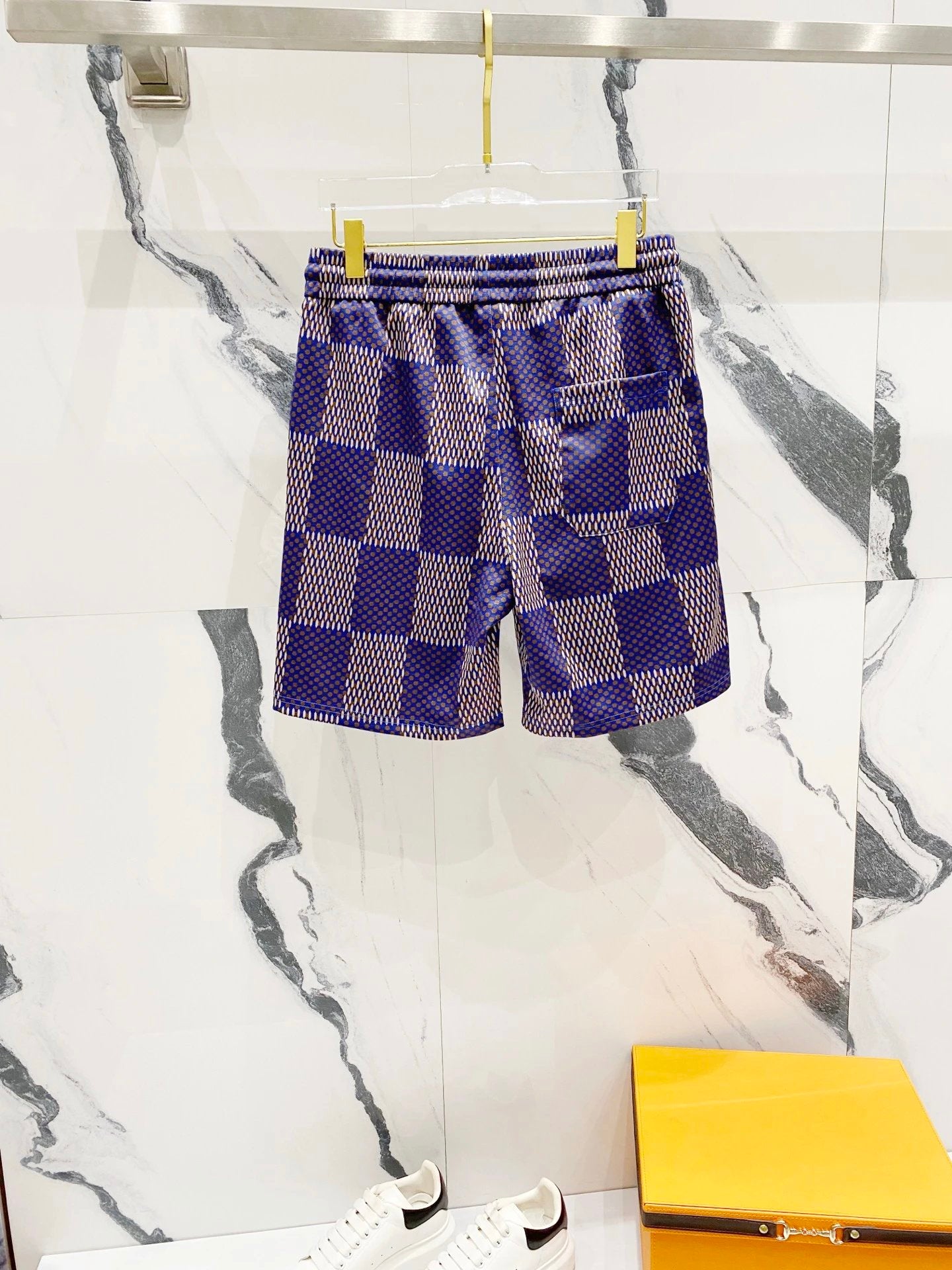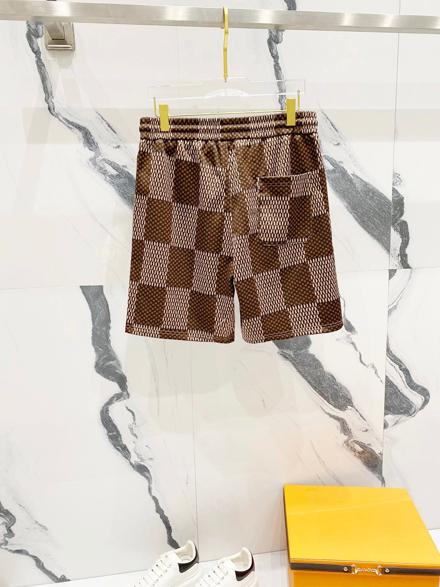Louis Vuitton LV Shorts Full Print Checkerboard Pattern Brand Hotfix Rhinestone Beaded Letters logo Five-point Shorts25ss New Drawstring Casual Summer Pants American Style5Two-in-One Casual Sweatpants for Men and Women, Pure Cotton Joggers
