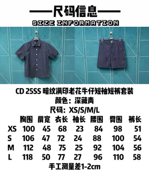 25SS Dark Pattern Full Print Vintage Floral Denim Short Sleeve Shorts Set
