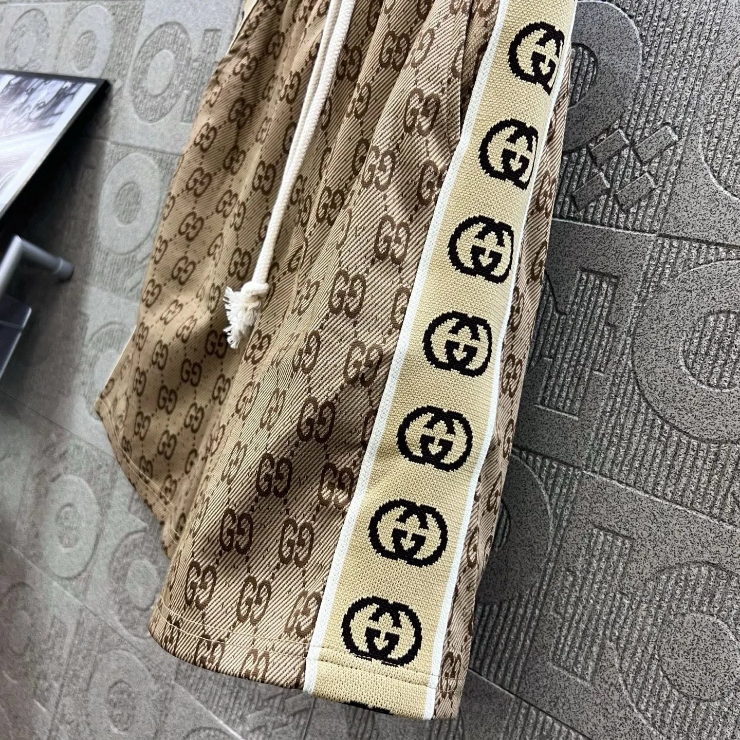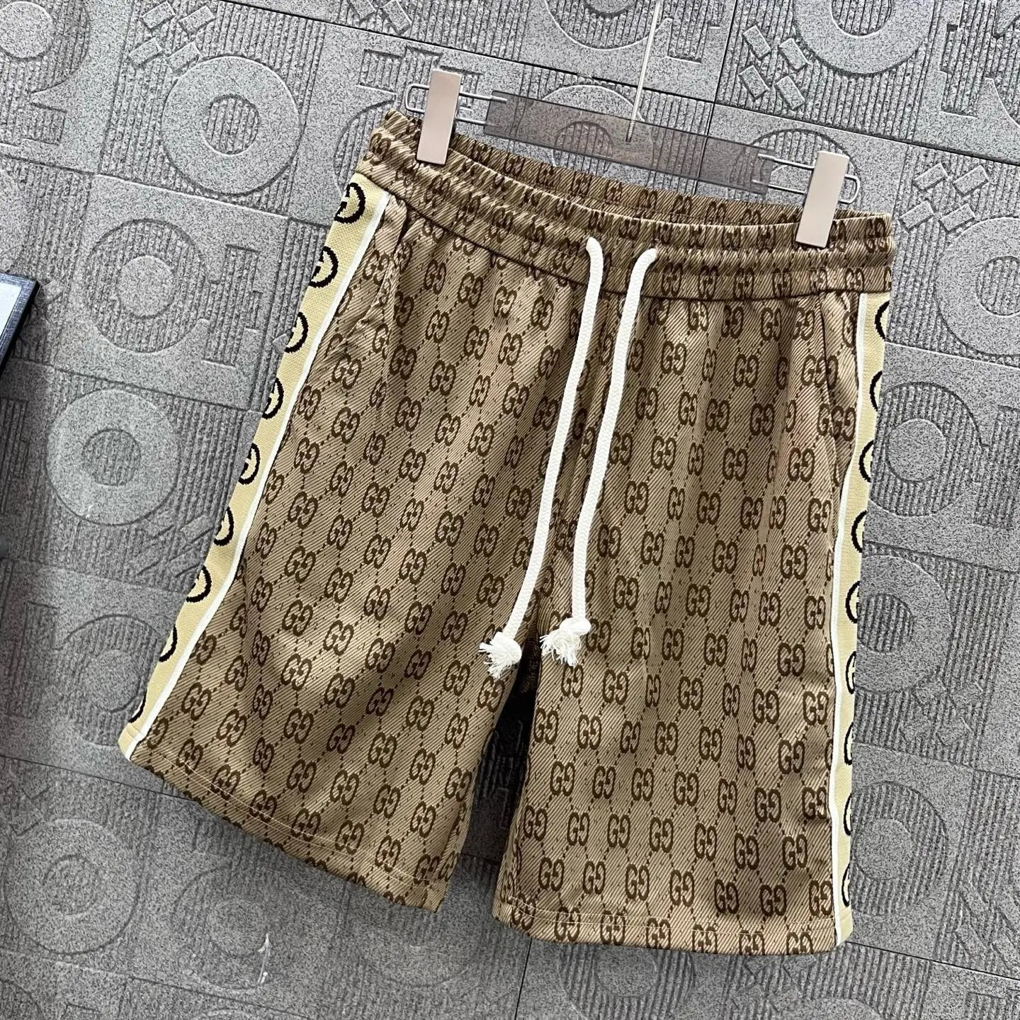 Gucci Shorts Full Print Double G Presbyopic Glasses with Double G Letter Ribbon logo Five-point Shorts25ss New Drawstring Casual Summer Pants5Two-in-One Casual Sweatpants for Men and Women, Pure Cotton Joggers