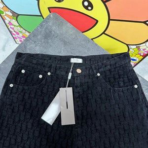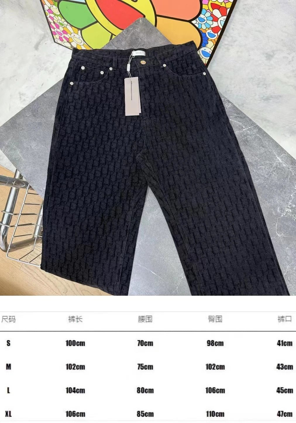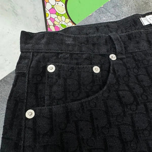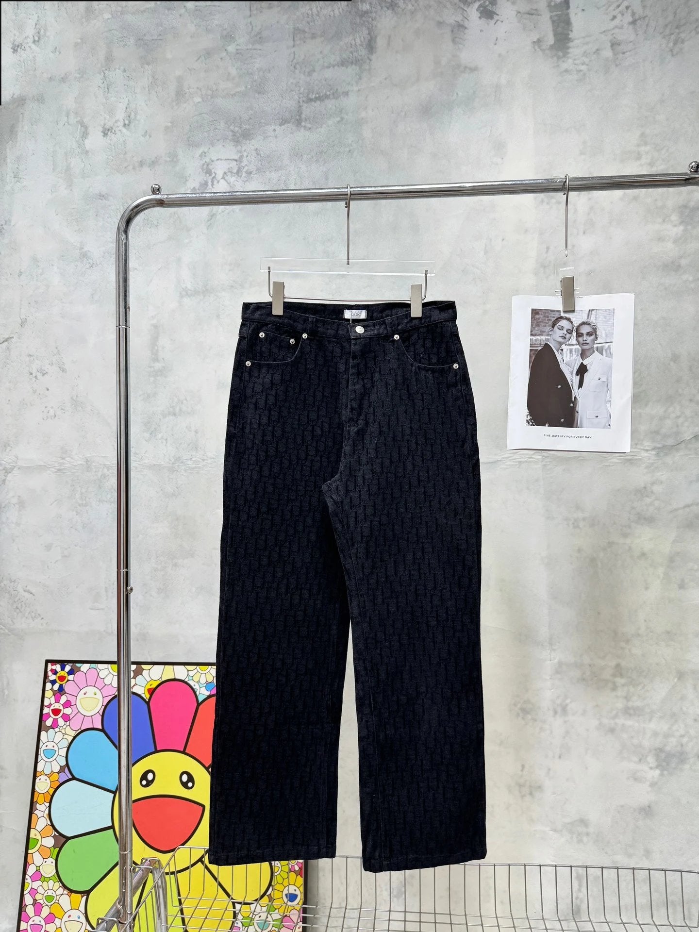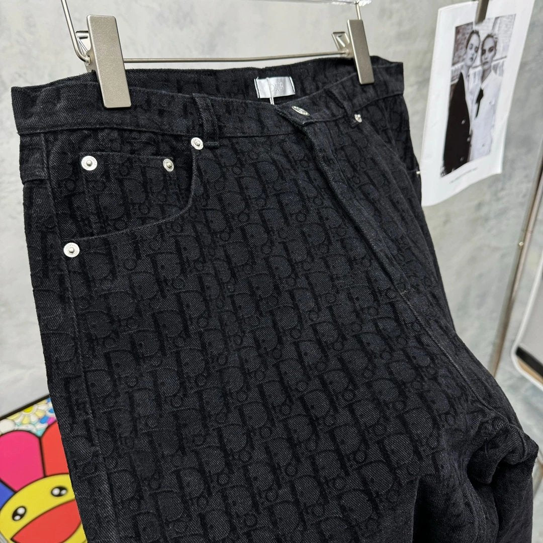 Dior Jeans Full Print Flocking Dark Pattern Straight Leg Jeans Casual Wide Leg Pants Slim Fit High Waist Long Pants Unisex24ss Autumn and Winter New Products