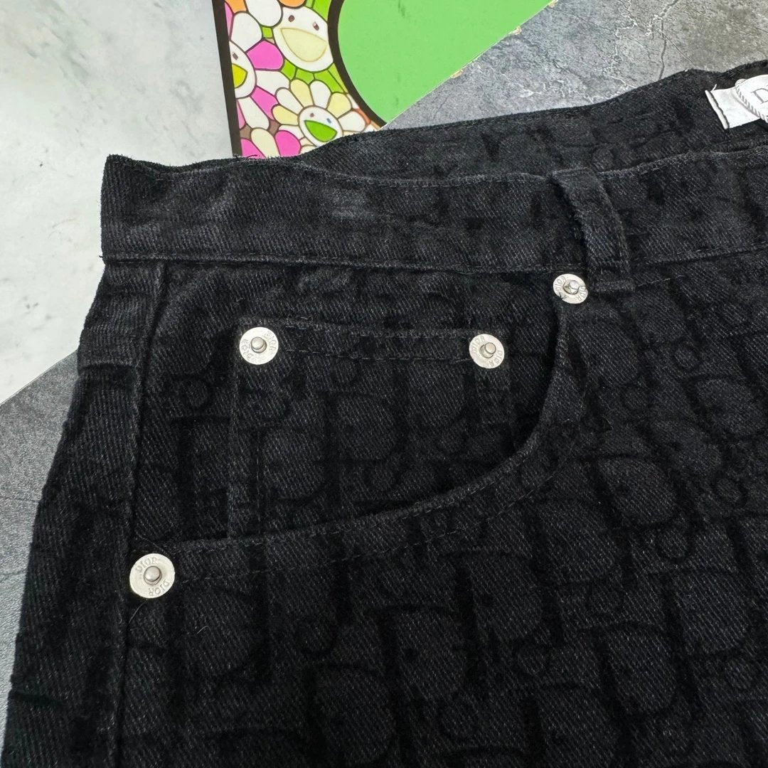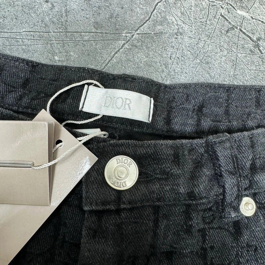 Dior Full Print Flocked Dark Pattern Straight Leg Jeans