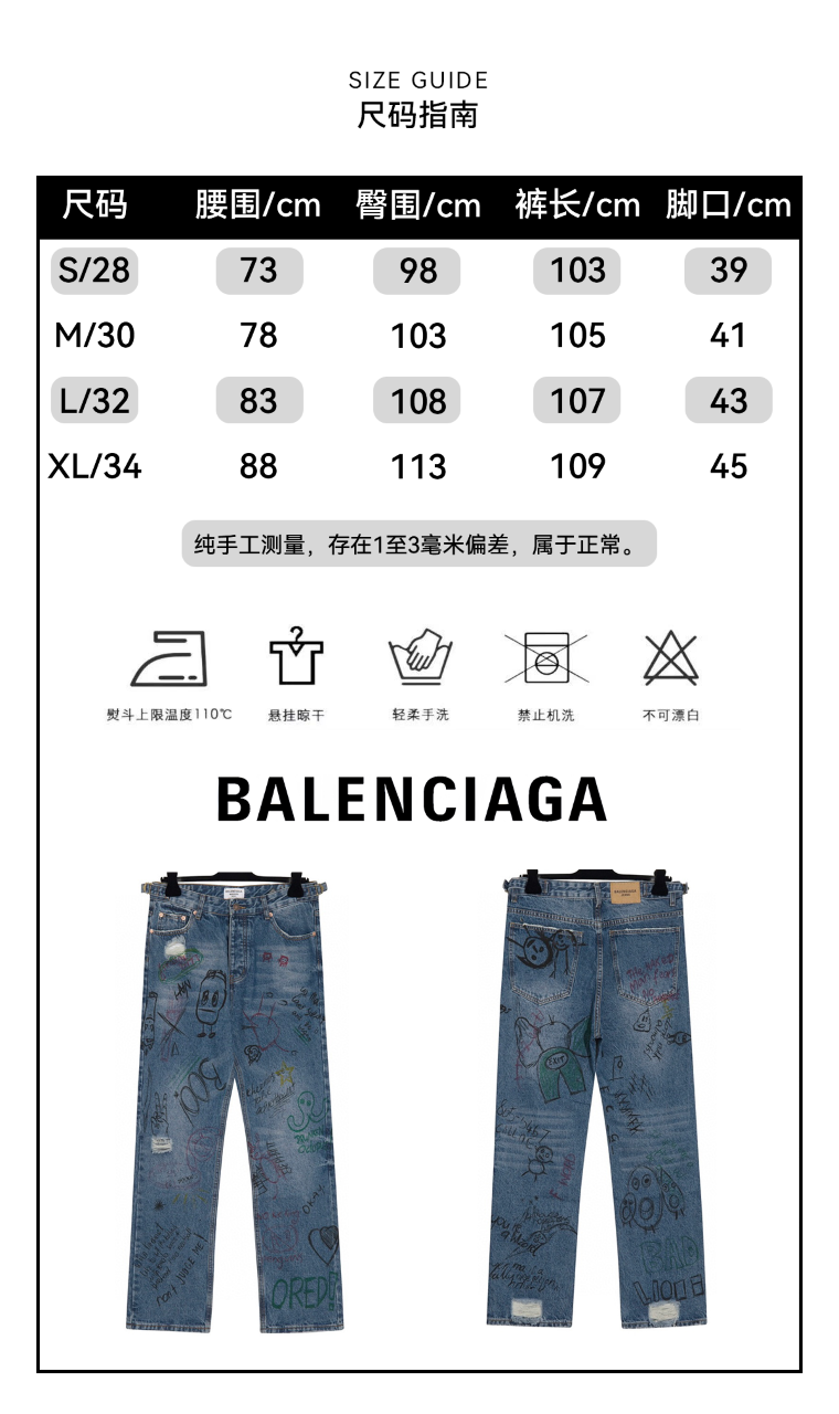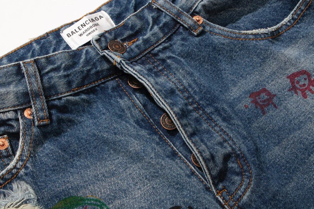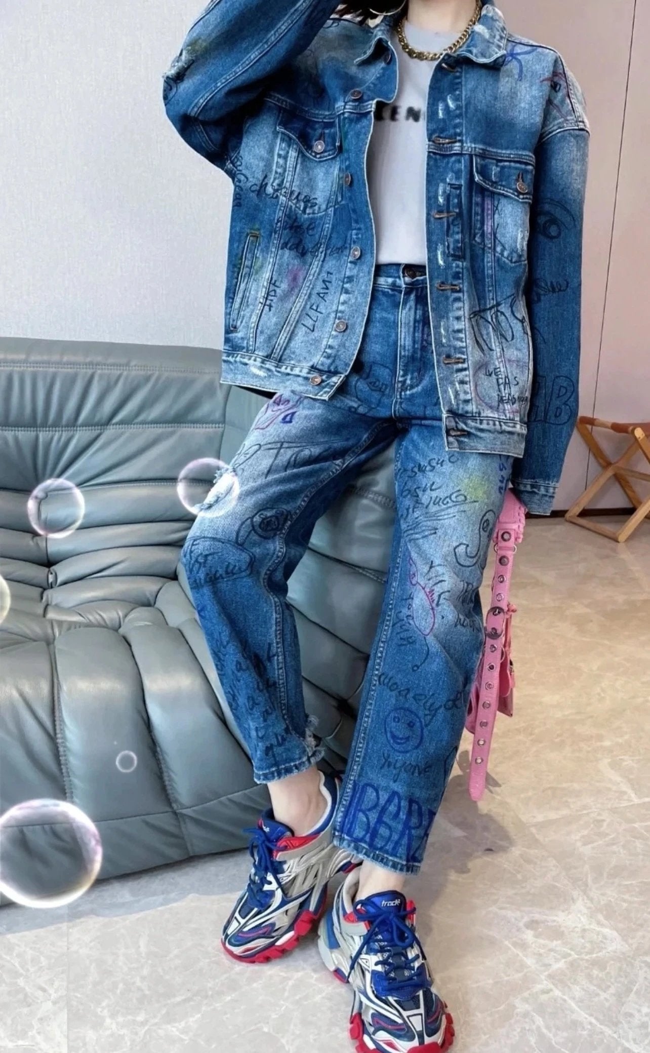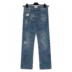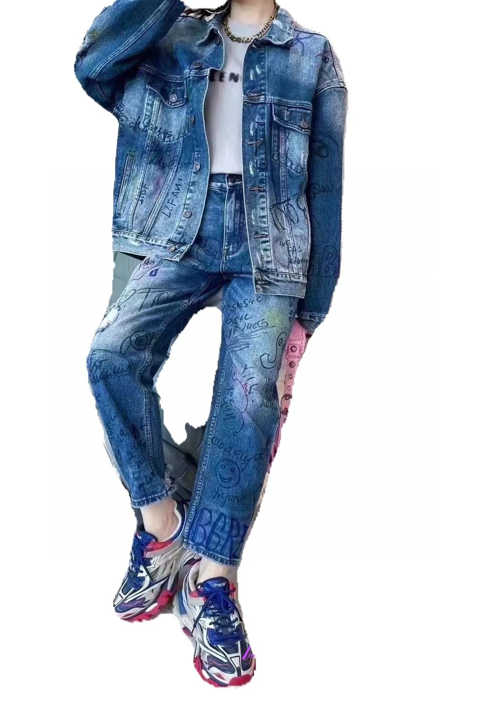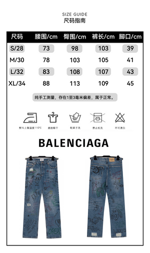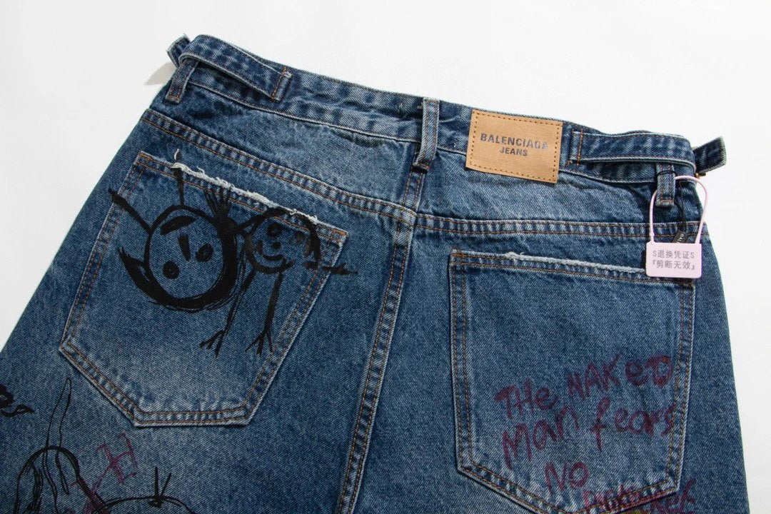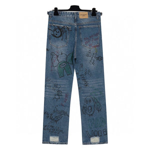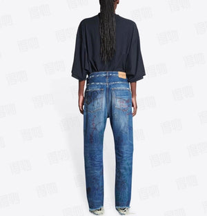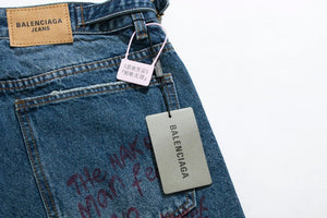 Balenciaga Jeans Full Print Graffiti Design logo25ss Spring Summer New Straight Leg Jeans Unisex Slim Fit Long Pants Loose