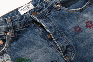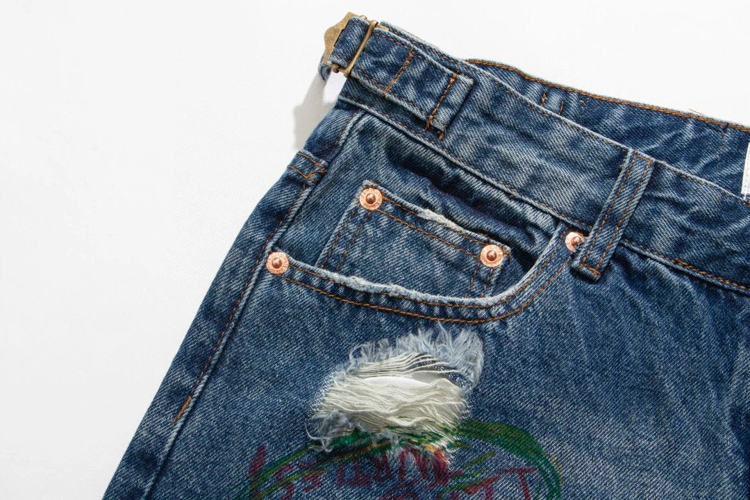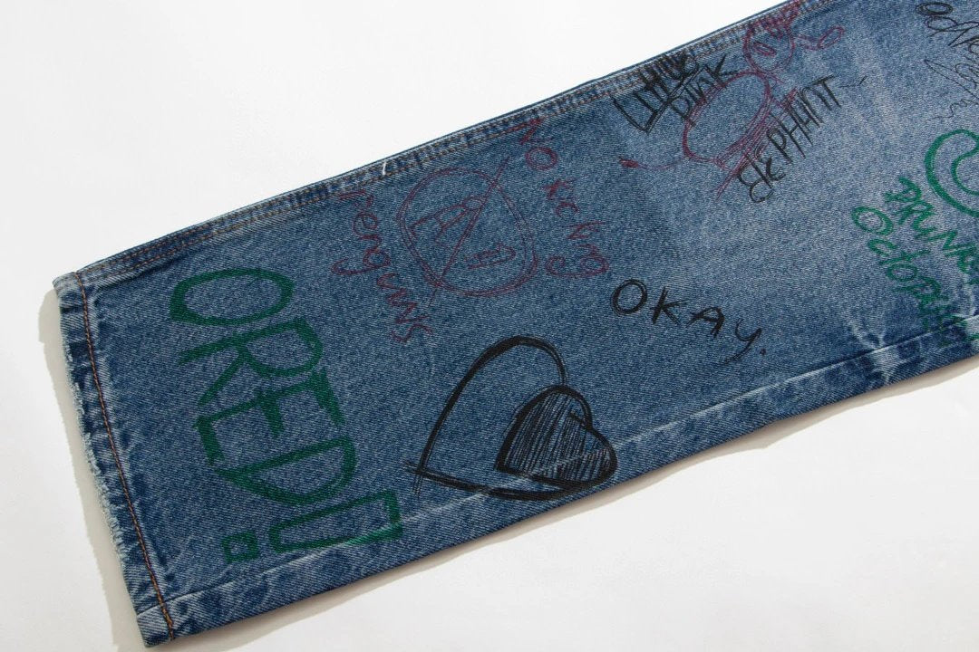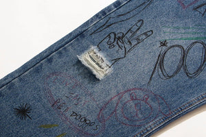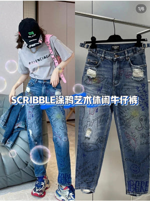 Trendy Hot-Selling Pre-Order! These New Graffiti Ripped Jeans Perfectly Blend Street Fashion with Avant-Garde Art. Every Graffiti is a Bold Challenge to Tradition, and the Ripped Design Directly Expresses Personality Attitude, Easily Creating a Unique and Stylish Look.