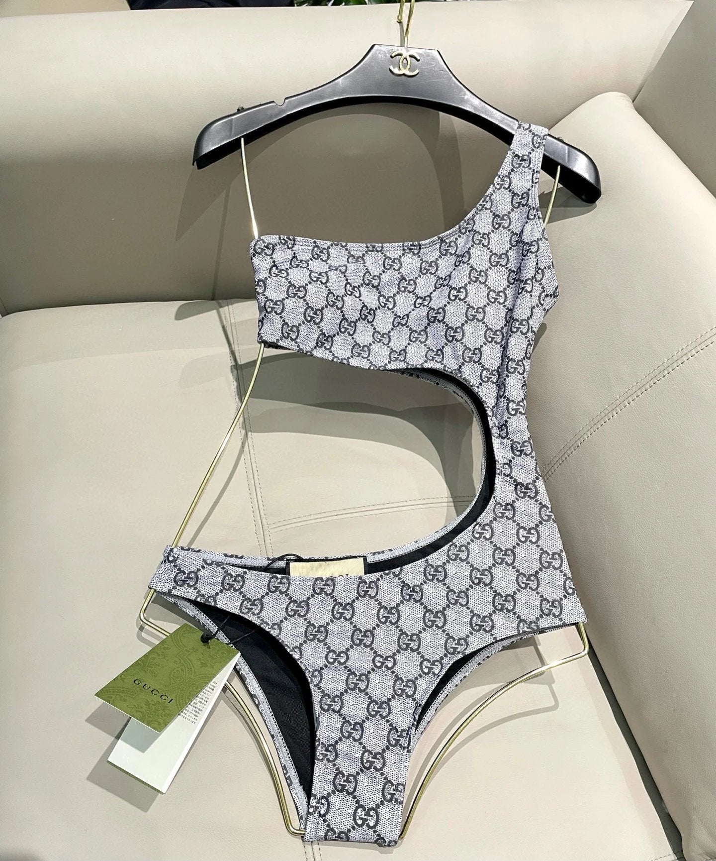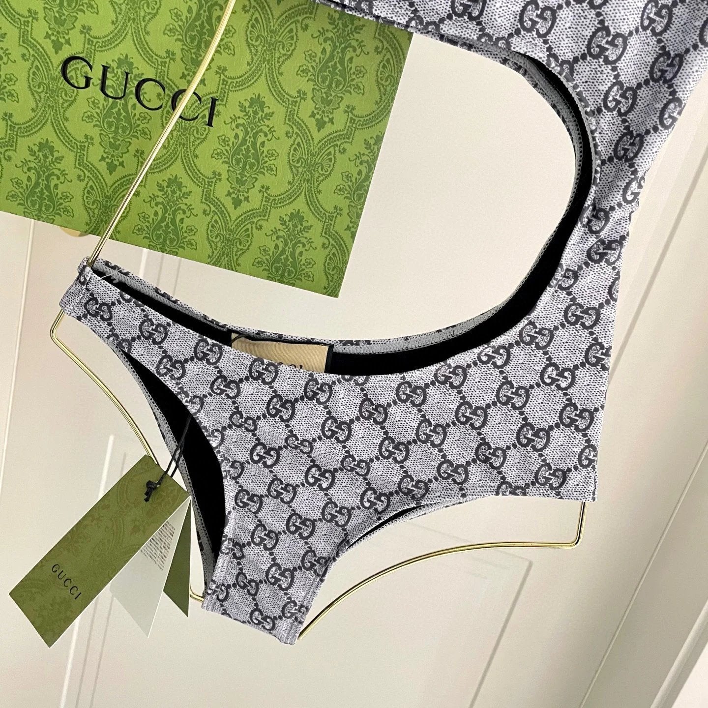 Gucci Swimsuit Full Print Jacquard Bikini One-Piece Swimsuit Sexy Small Chest Gathered Beach Pool Backless White Women's Swimwear Vacation Hot Spring