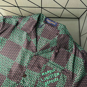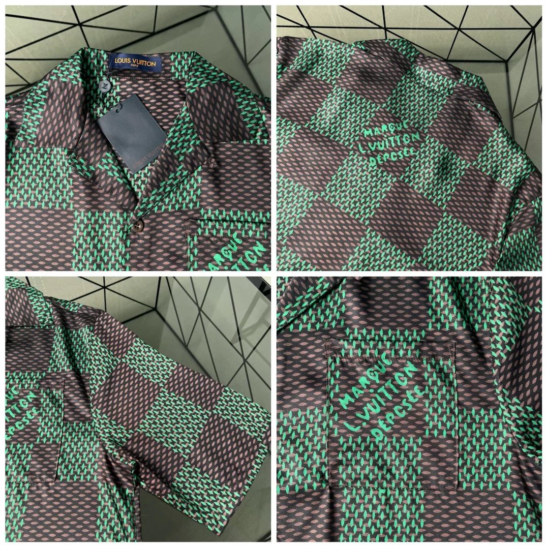 Louis Vuitton LV Shirt Full Print Large Checkerboard Pattern logo Shijia Turn-down Collar Short Sleeve Shirt Versatile Business Unisex Casual Slim Fit Jacket