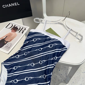 Gucci Swimsuit Full Print Letter Bikini Swimsuit Sexy Small Chest Gathered Beach Pool Vacation Hot Spring Backless White Women's Swimwear