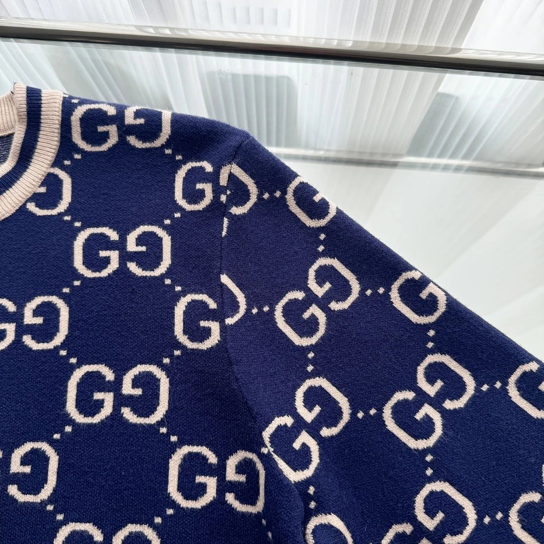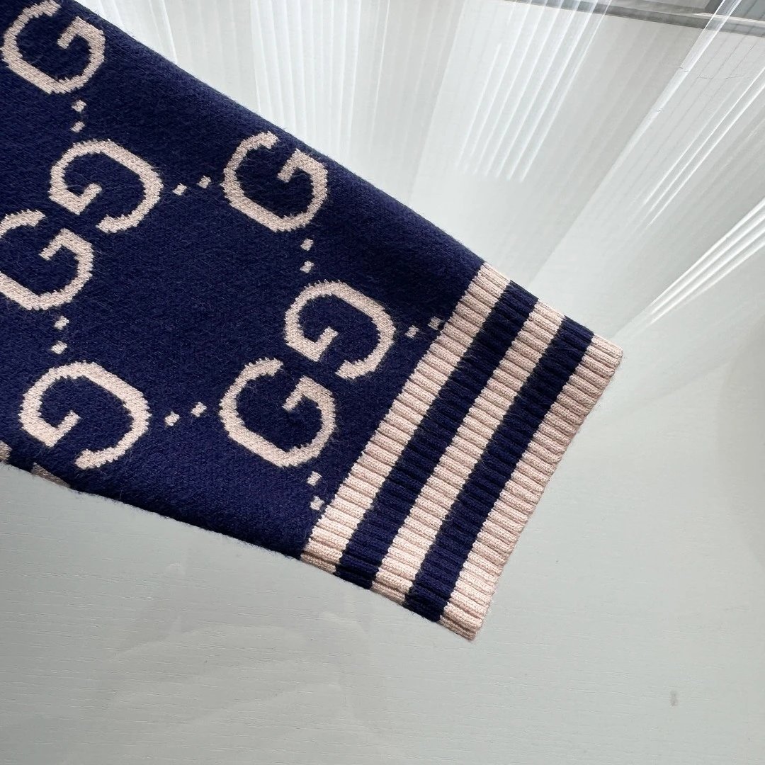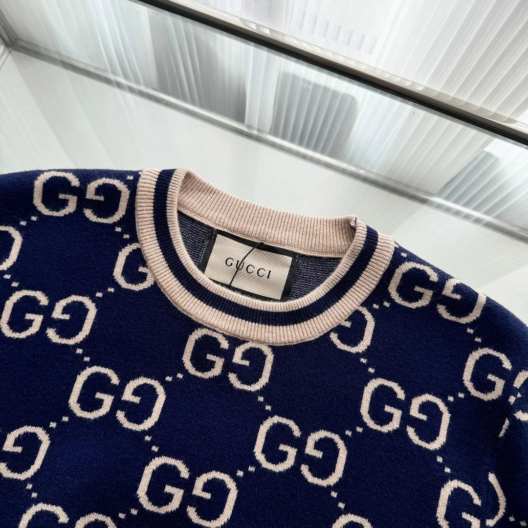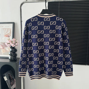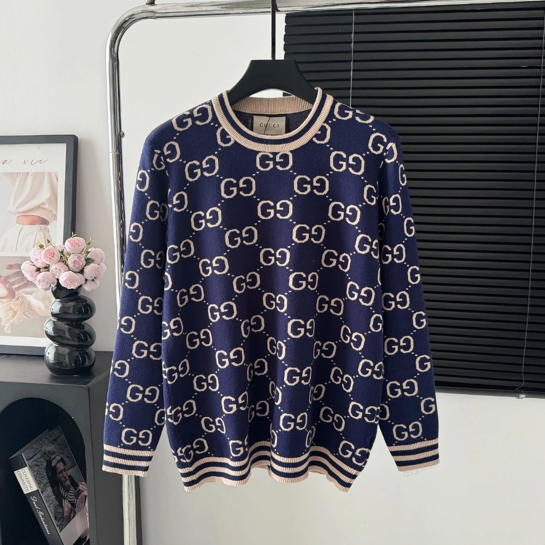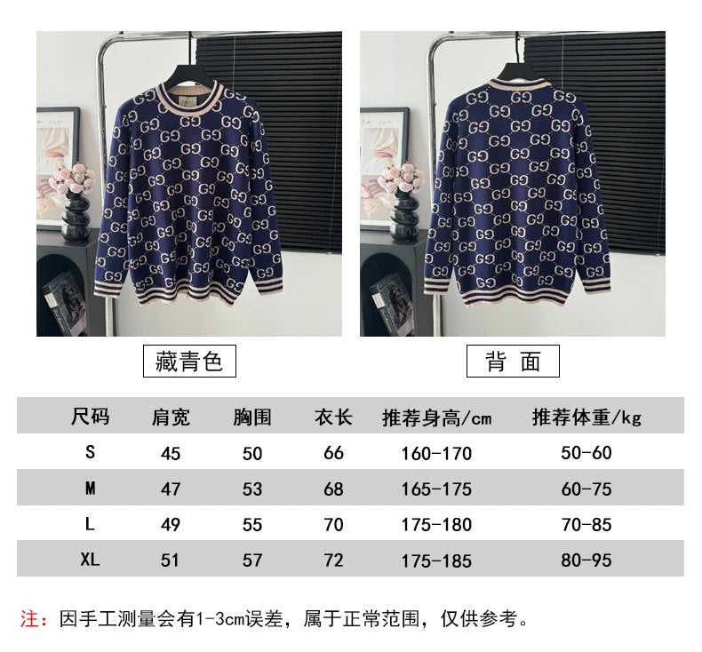 Gucci Sweater Full Print LOGO Color Block Striped Crew Neck Sweater25ss Spring New Thickened Long Sleeve Pullover Unisex OS Loose Fit Top Versatile Casual Jacket Lazy Style