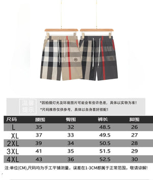 Burberry Shorts Full Print Plaid with Front Embroidery logo Five-point Shorts25ss New Drawstring Casual5Two-Piece Casual Sweatpants Summer Pants Unisex Pure Cotton Sweatpants
