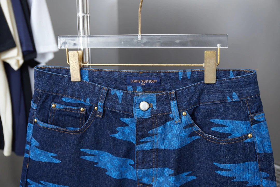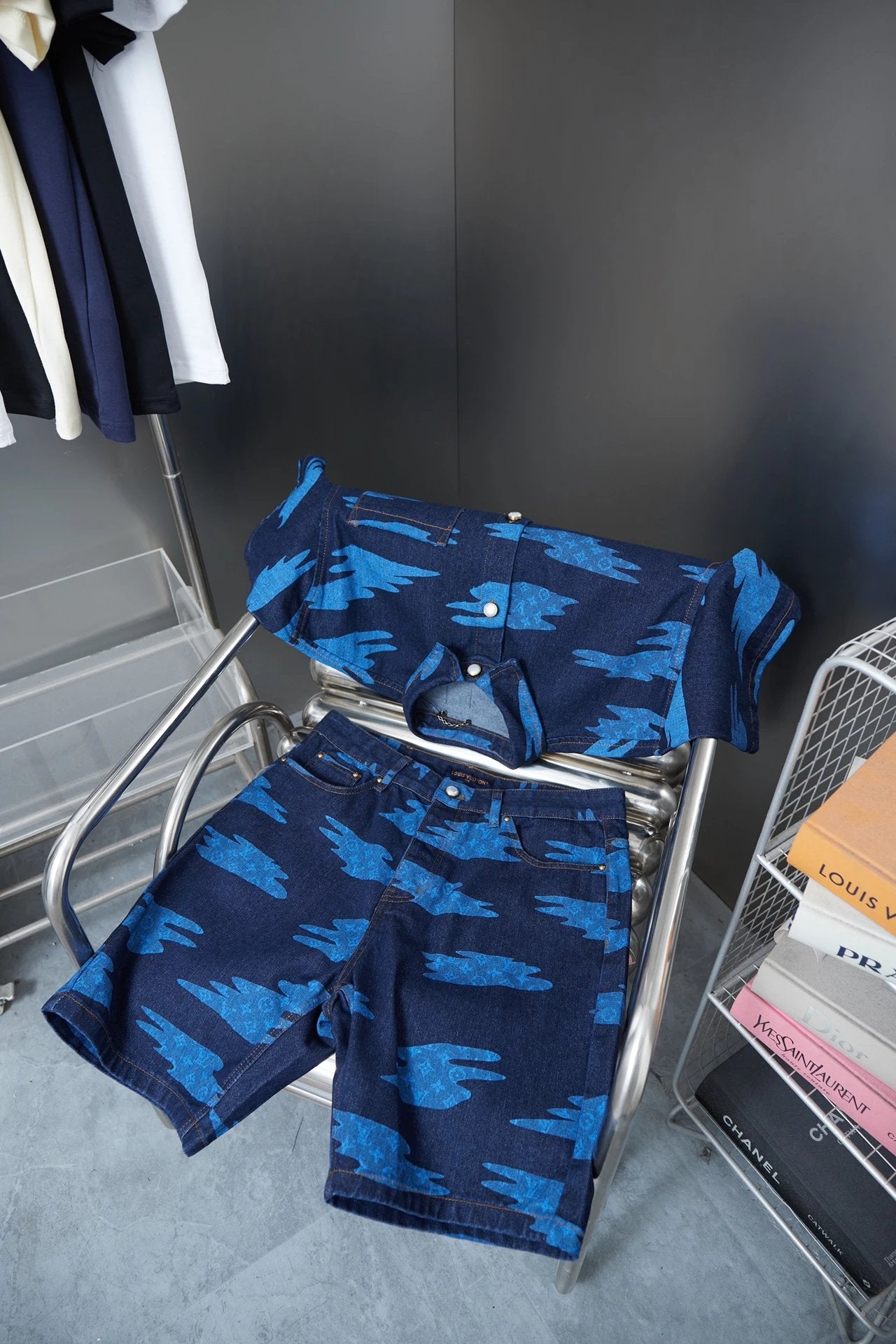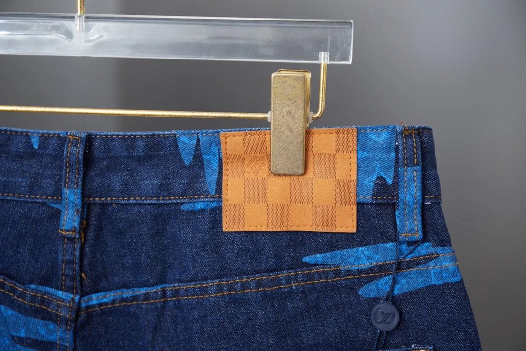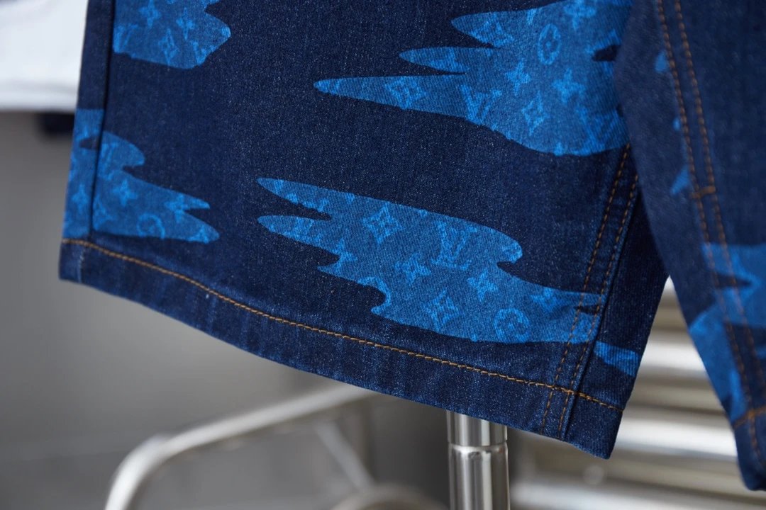 Louis Vuitton LV Shorts Full-width Pattern Print logo Denim Shorts Five-Point Pants25ss New Casual Summer Pants5Two-in-One Casual Sweatpants for Men and Women