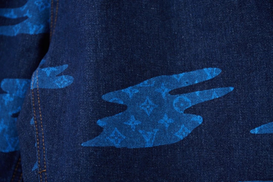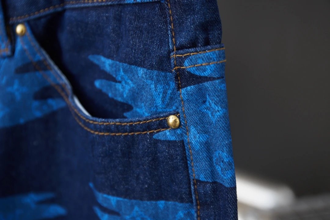 Lv Home 25ss New Skateboard Jeans Made of Washed Denim with a Relaxed Fit, Featuring Full-Length LV Blason Print Reflecting the Gradient Theme of the 2025 Spring Collection, Can Inject Attention-Grabbing Dynamic Vibe into Various Looks.