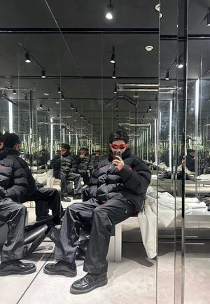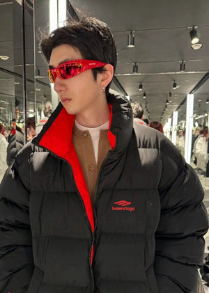Logo Letter Print High Neck Zipper Loose Fit 3B SPORTS ICON TRACKSUIT Cocoon Double-Sided Wear Wide Turtle Back Down Jacket