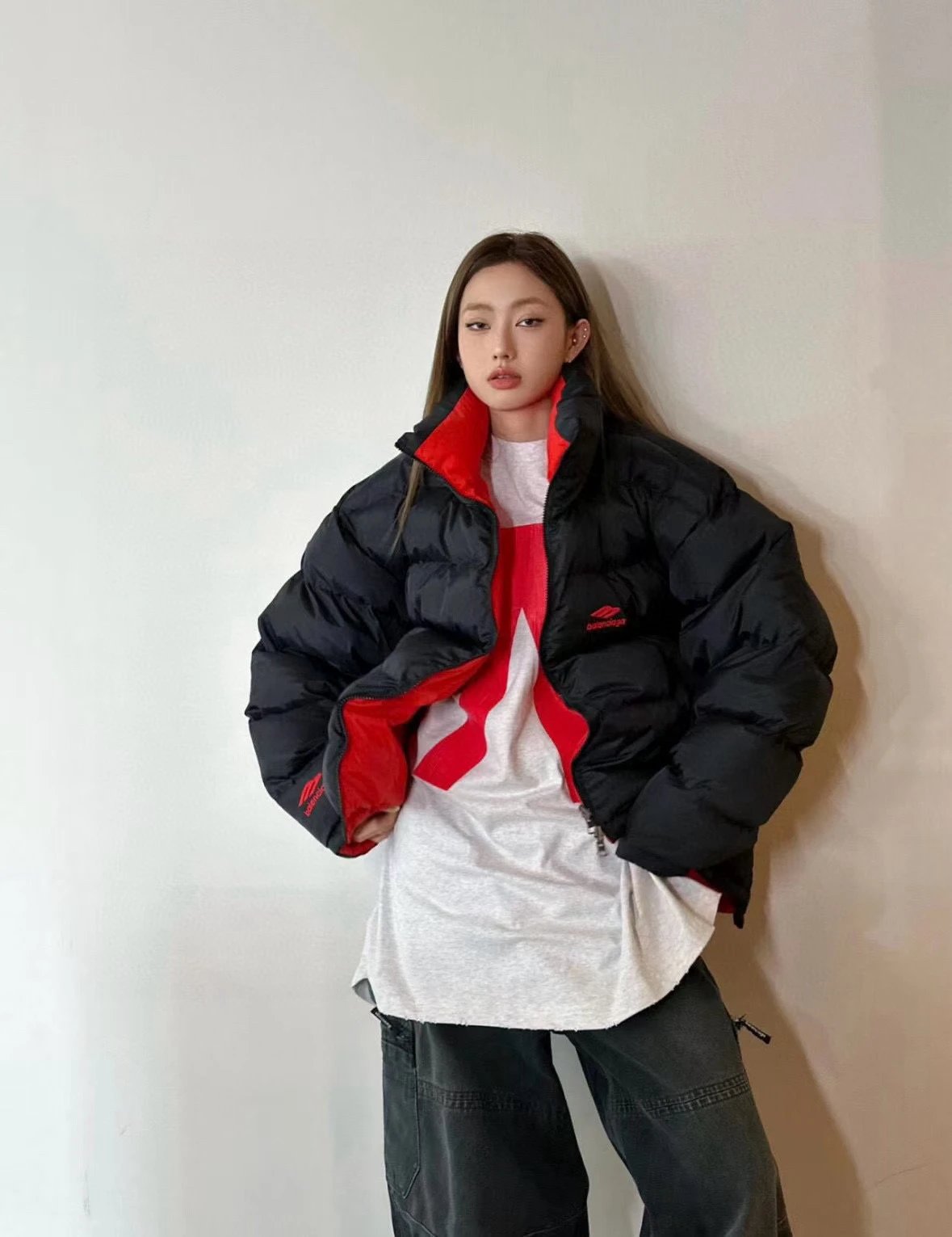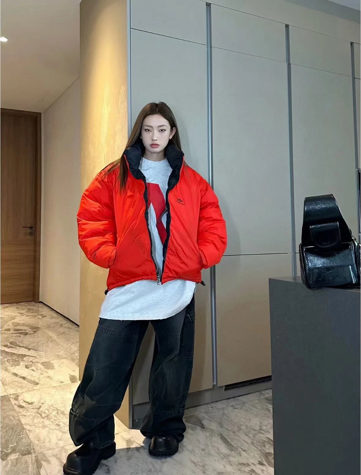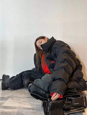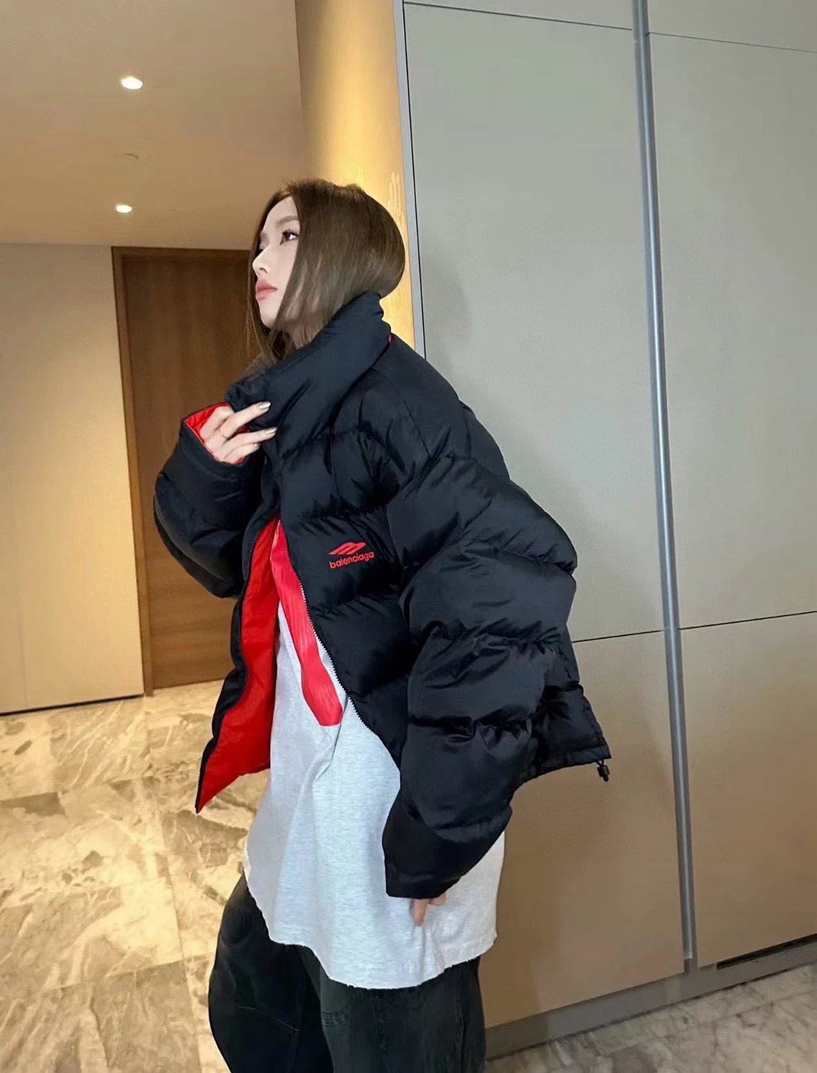 Balenciaga Down Jacket FW24Logo Letter Print High Collar Zipper Loose Fit Cocoon Style Reversible Wide Turtle Back Down Jacket Unisex Coat