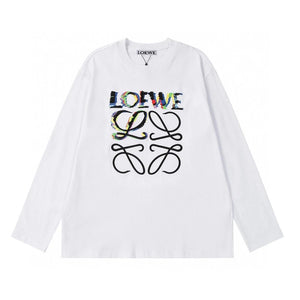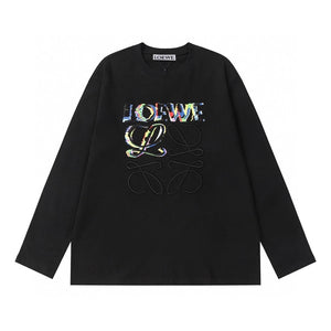 LOEW Gradient Embroidered Logo Crewneck Sweatshirt Long Sleeve Base Shirt Jacket Top Fashion Unisex Sports Casual Loose Fit Versatile Autumn Winter New Arrival