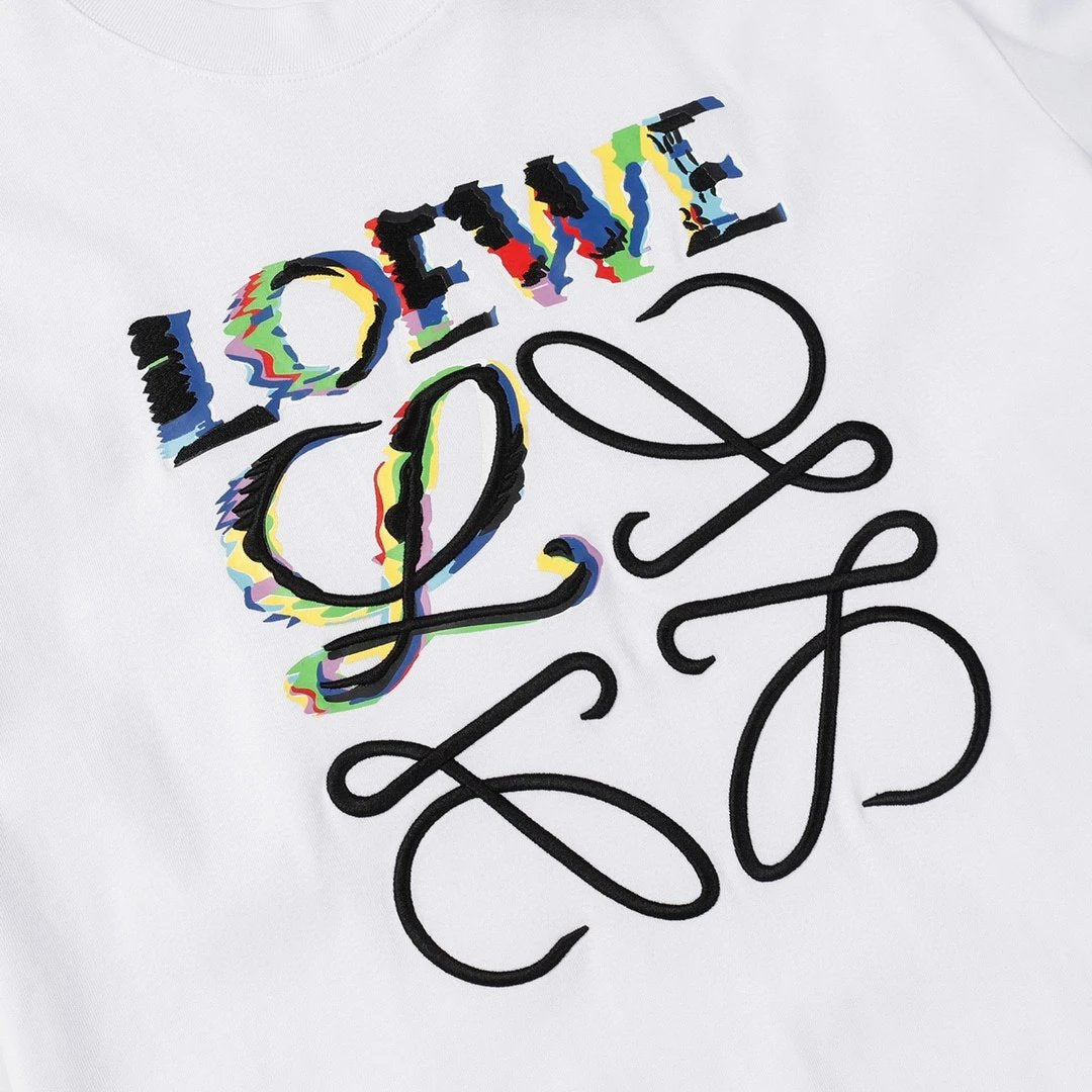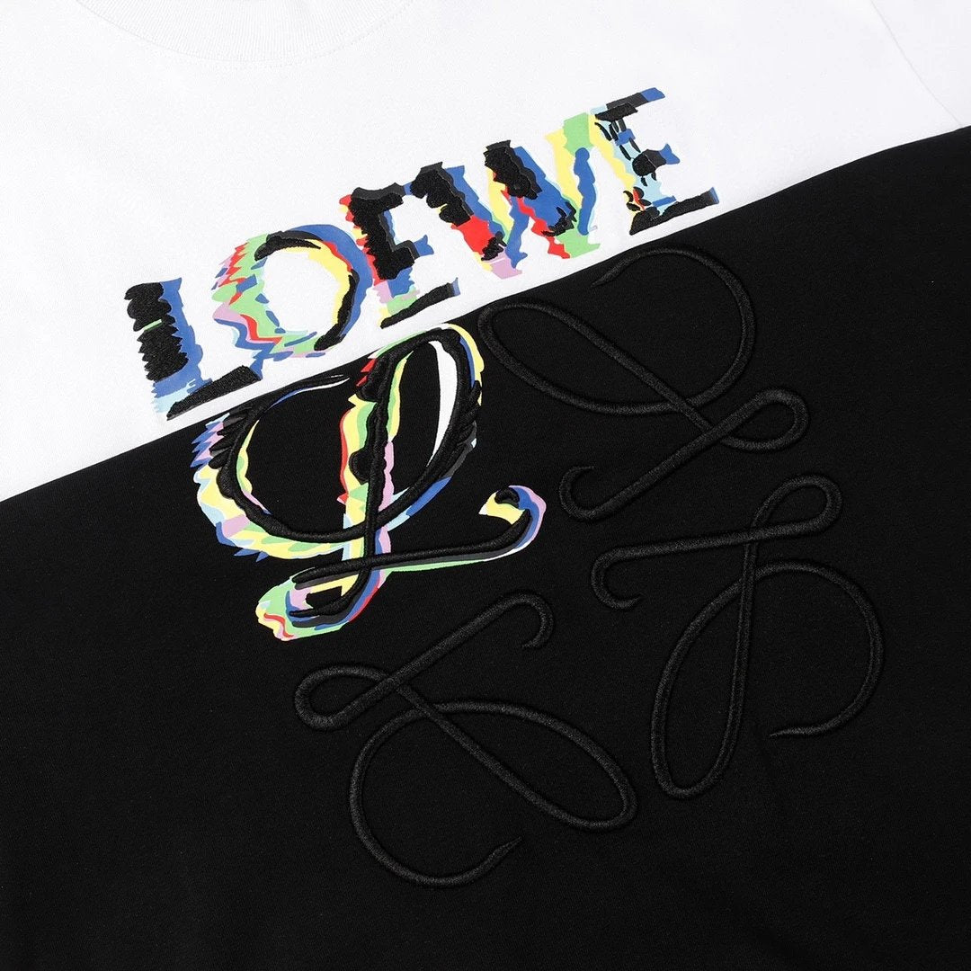 100% Cotton Plain Knit Crew Neck T-Shirt, Front LOEWE Gradient Print and LOGO Embroidery. The material is made of 100% imported cotton! It is manufactured from 40S+30 Tencel cotton with a weight of 100 grams after initial dyeing at high temperatures and final setting! All three standards are met, unisex design