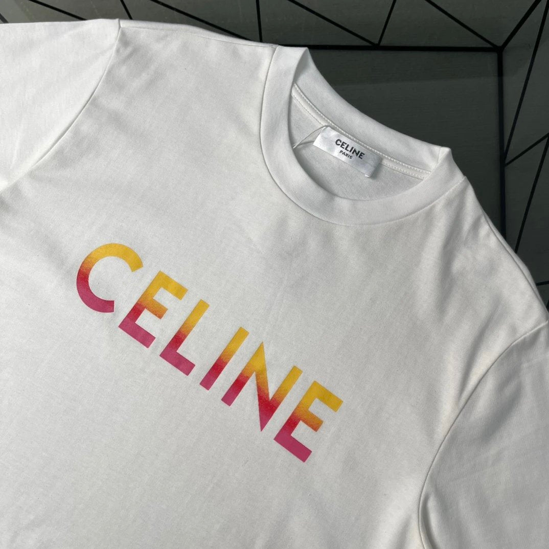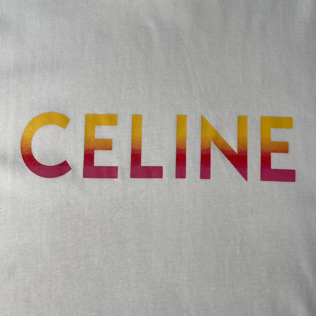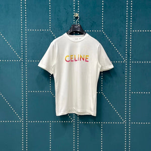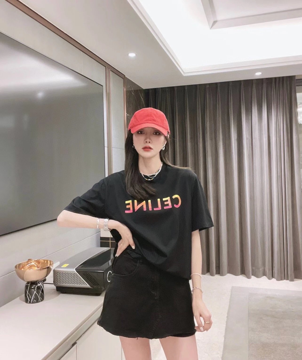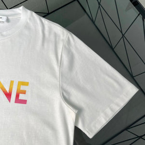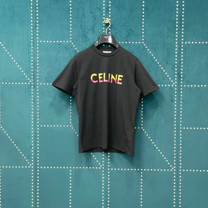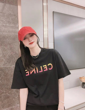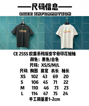 Celine T-shirt Gradient Letter Print on the Chest logo round Neck Short Sleeve25ss New Pure Cotton Unisex Style T Casual T-Shirt Base Layer Shirt OS Loose Fit Half Sleeve Top Plus Size