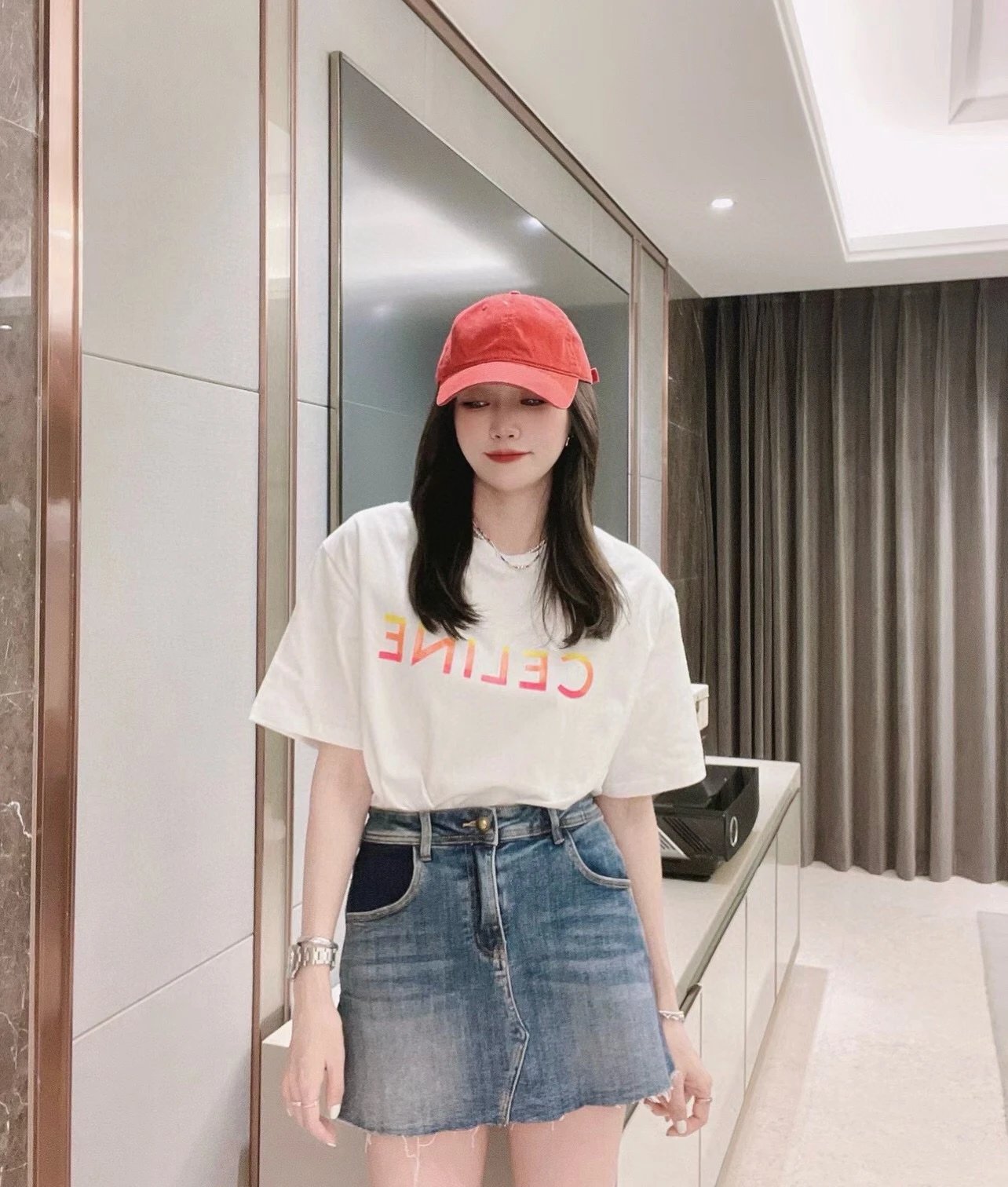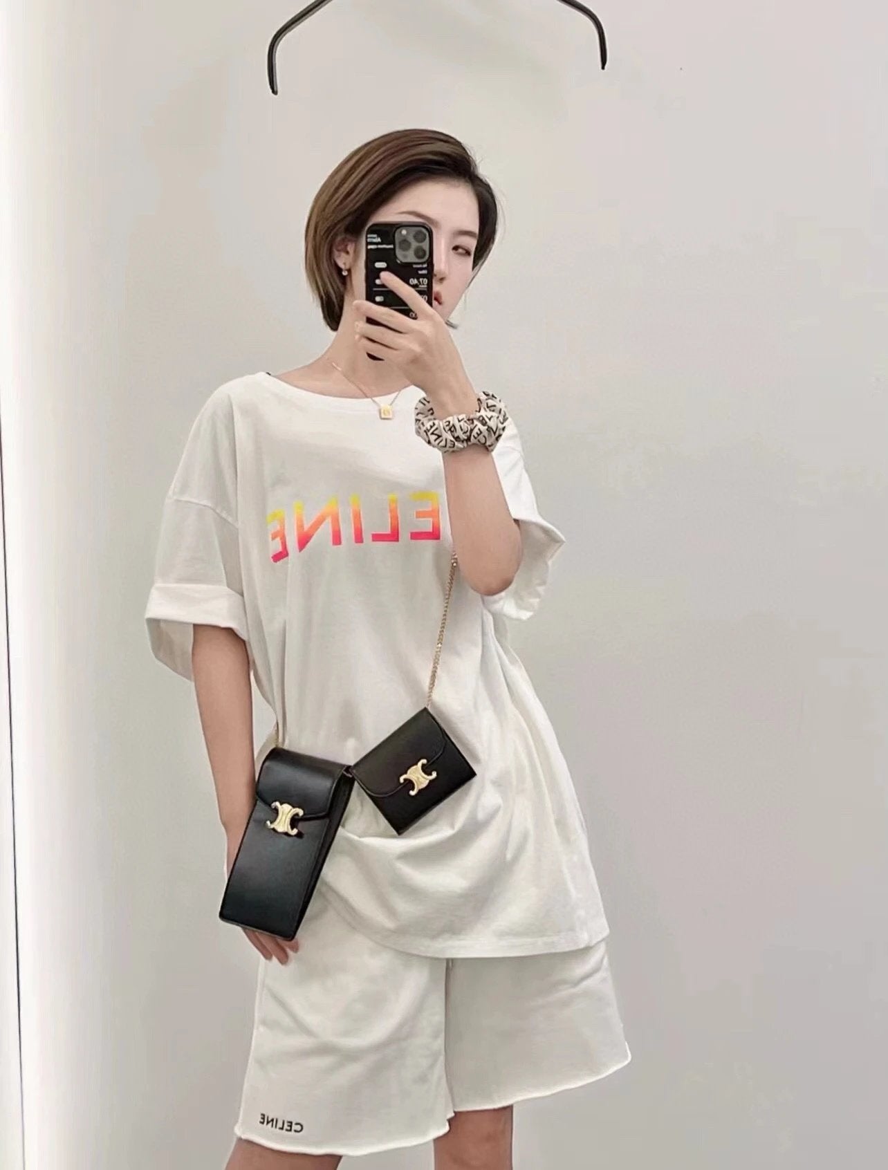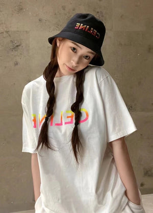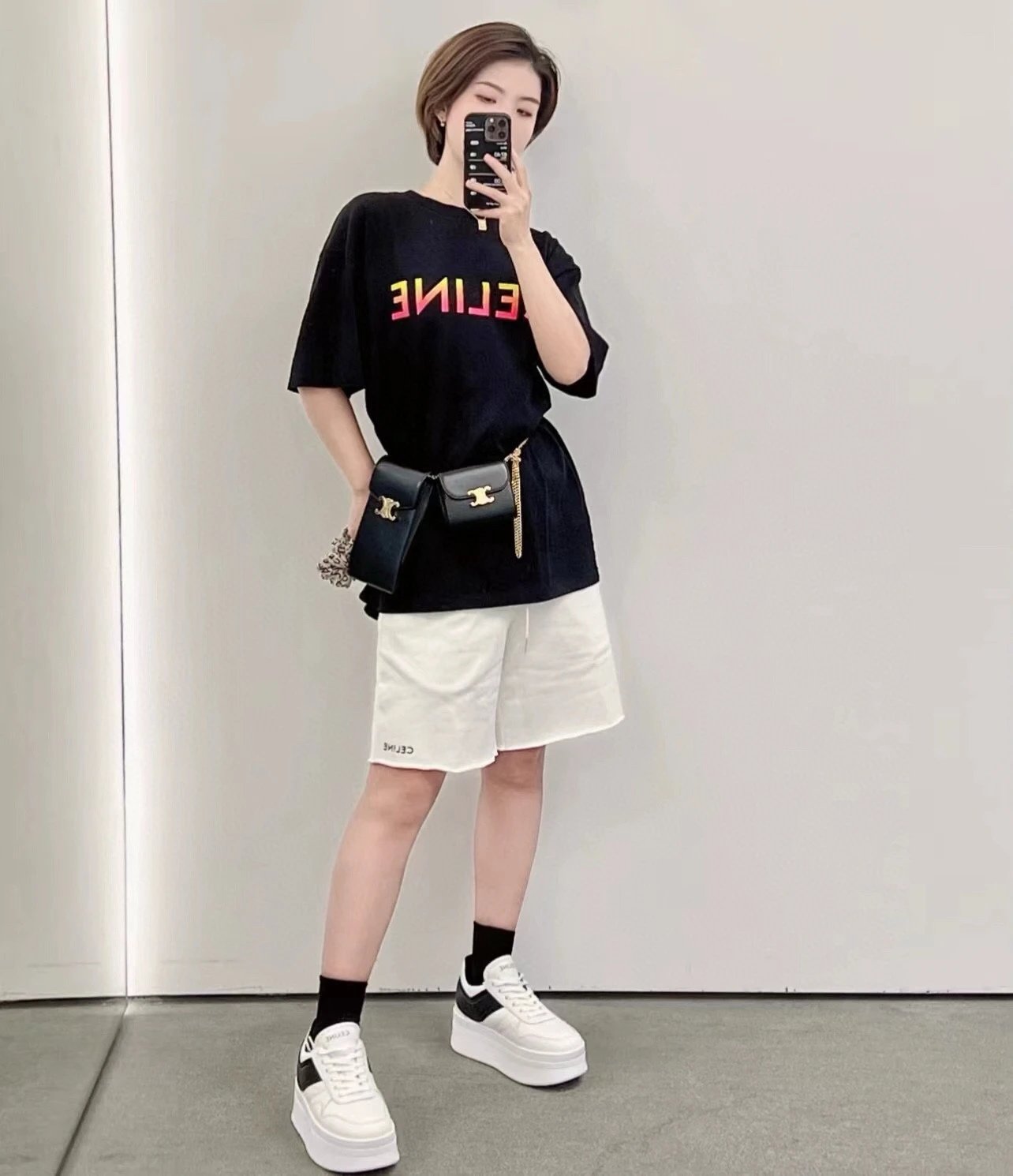 Celine T-shirt Gradient Letter Print on the Chest logo round Neck Short Sleeve25ss New Pure Cotton Unisex Style T Casual T-Shirt Base Layer Shirt OS Loose Fit Half Sleeve Top Plus Size
